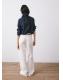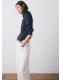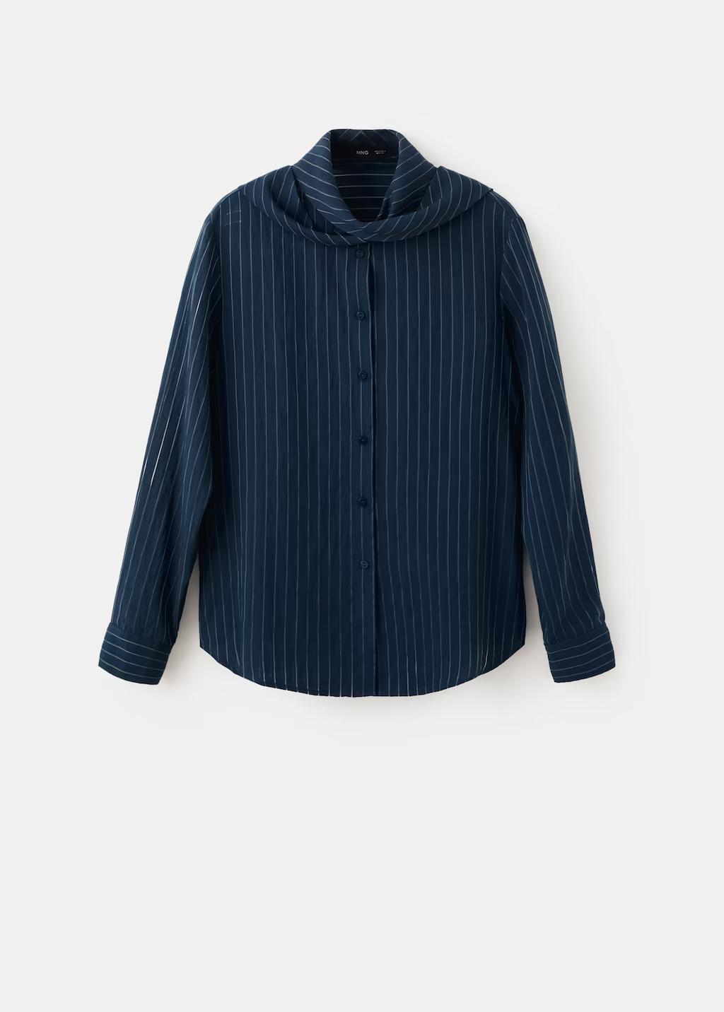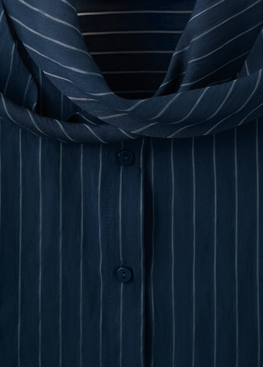 Diseño recto. Estampado Rayas. Cuello alto con lazo. Manga larga con puños abotonados. Cierre delantero con botones