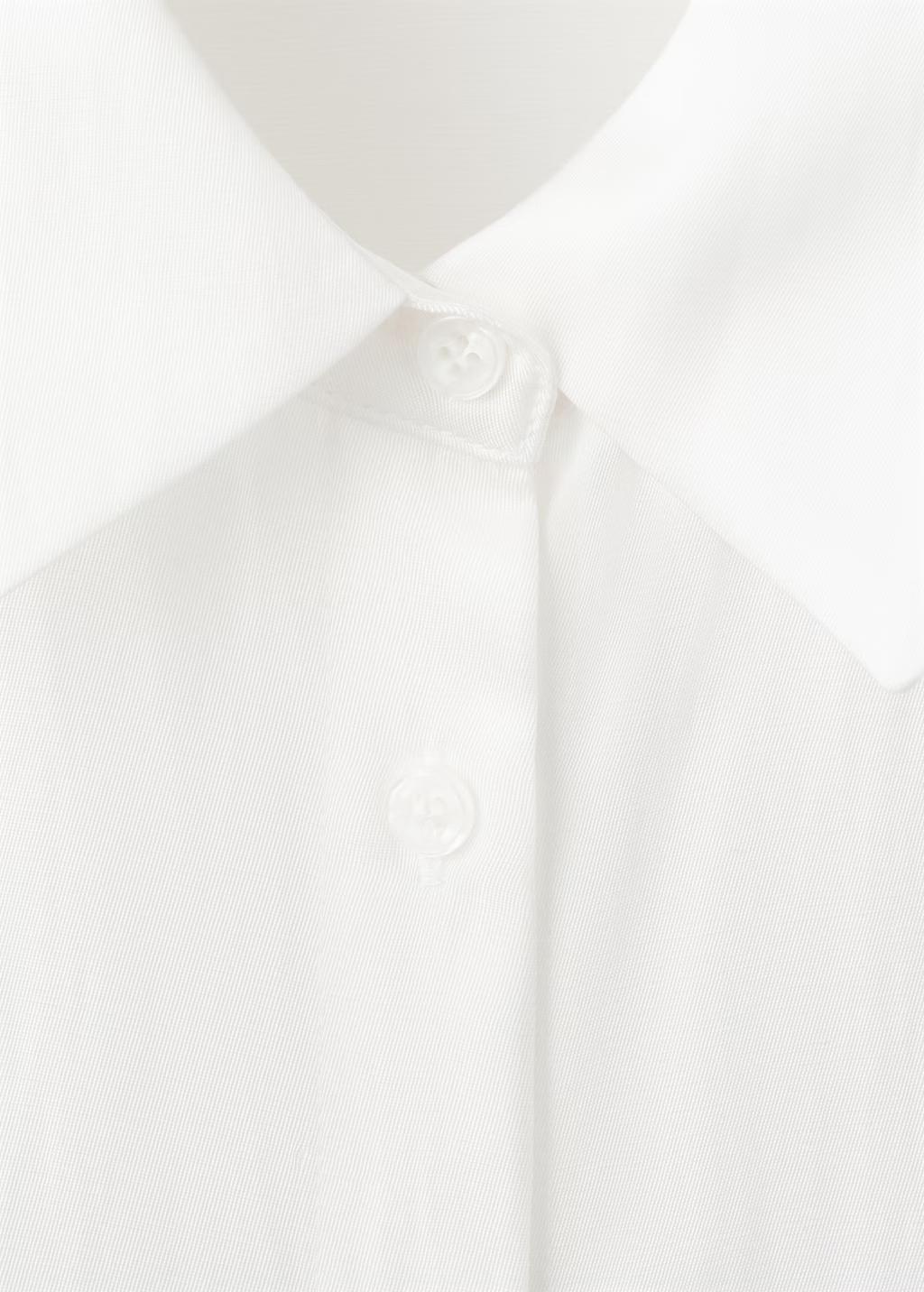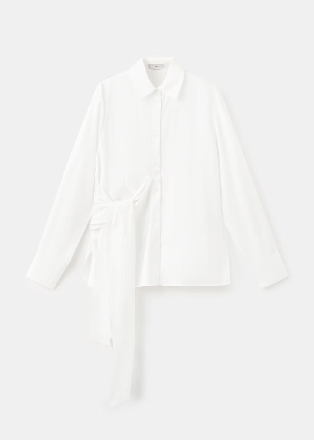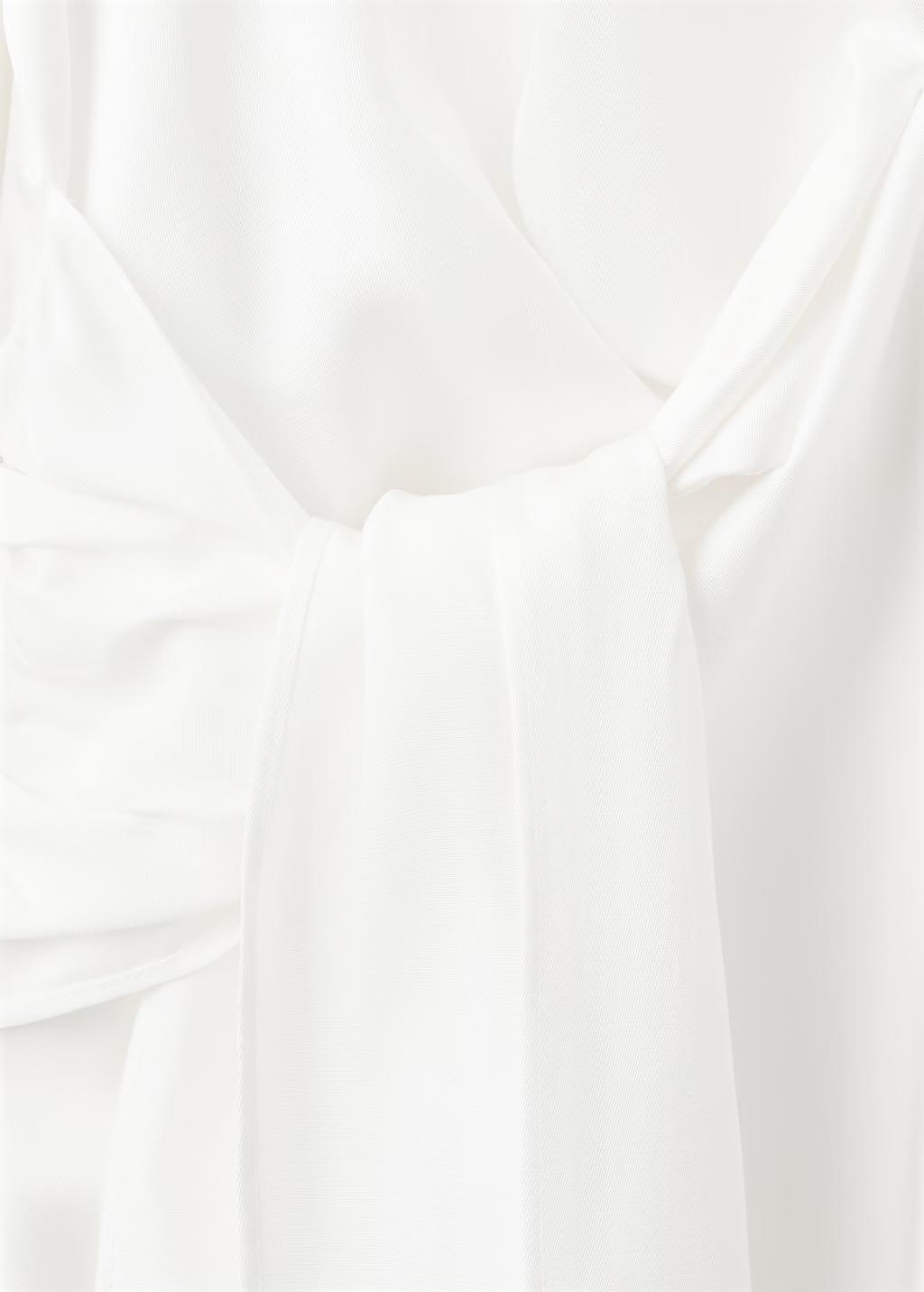 Diseño largo. Cuello camisero. Manga larga con puños abotonados. Detalle de nudo en la parte delantera. Cierre de botones en la parte delantera