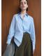 Tejido de popelín. Tejido mezcla algodón y lyocell. Estampado de raya diplomática. Regular fit. Diseño recto. Cuello camisero. Manga larga con puños abotonados. Cierre delantero con botones