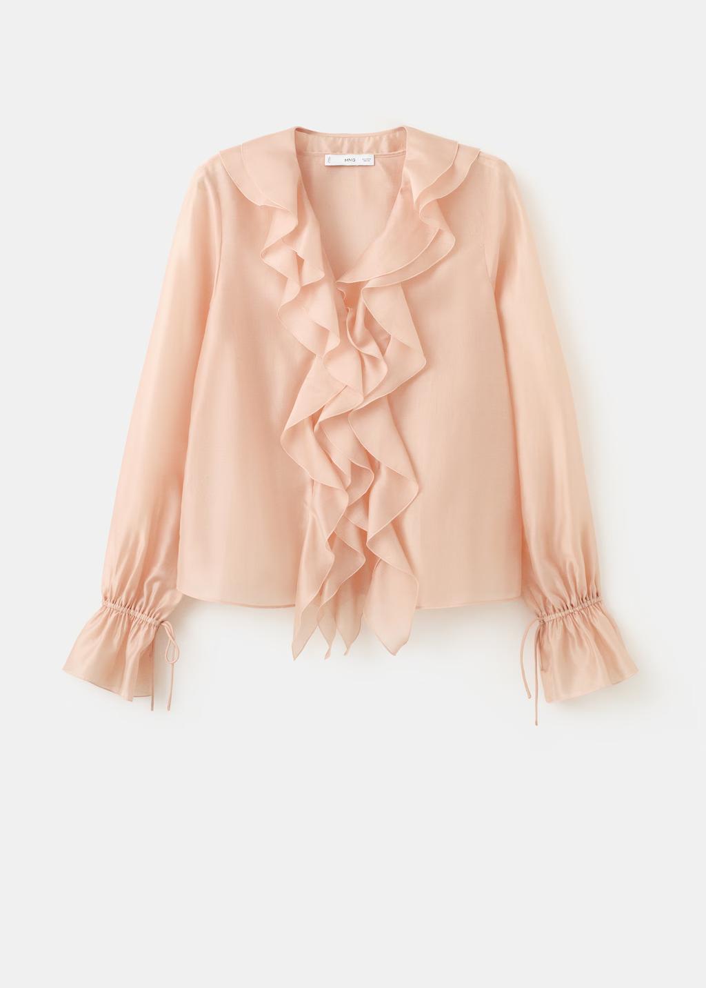 Tejido de lyocell. Diseño recto. Cuello pico. Detalle de volantes. Manga larga con puños ajustables. Cierre delantero