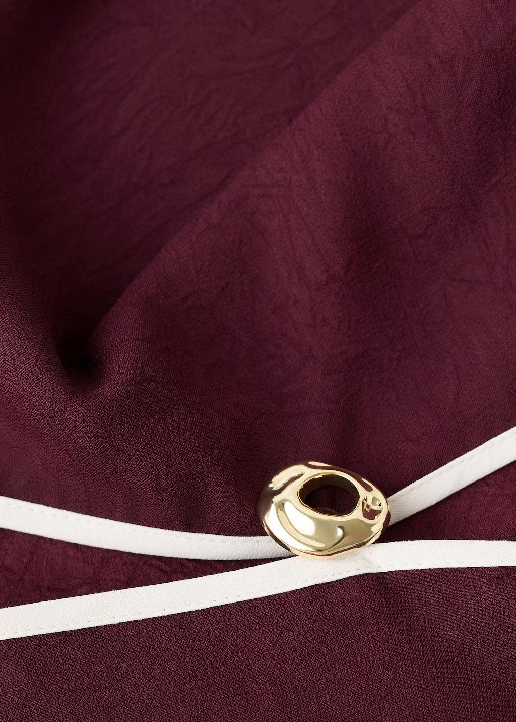 Diseño recto. Cuello barco. Manga corta. Manga con detalle de volante. Cierre en el cuello
