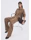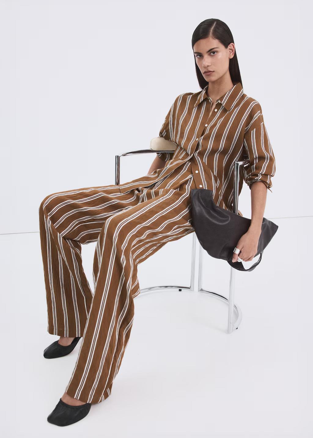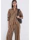 Estampado de rayas. Diseño recto. Detalle de pinzas. Tiro medio. Dos bolsillos laterales. Cierre oculto de ganchos y cremallera