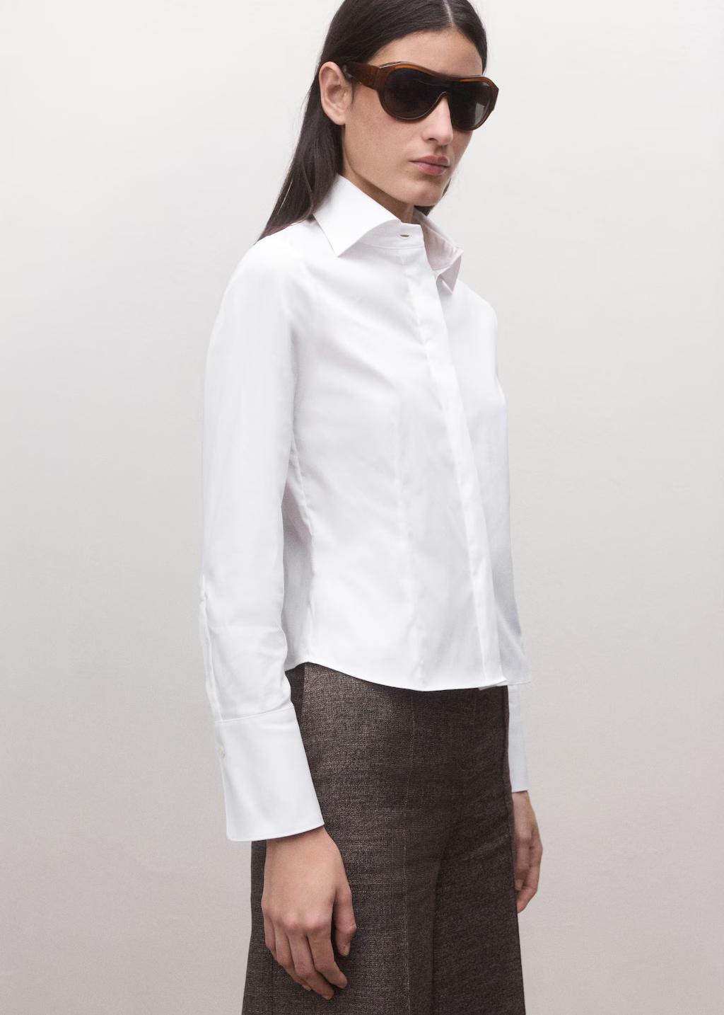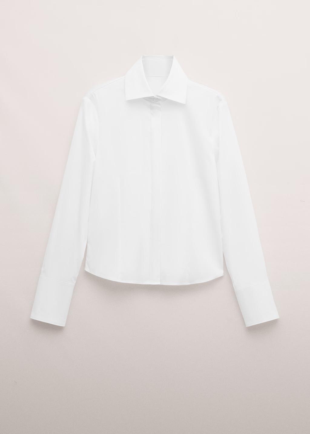 Tejido mezcla de algodón. Tejido con elasticidad. Diseño entallado. Cuello camisero. Manga larga con puños abotonados. Cierre delantero de botones oculto con tapeta. Colección Selection. Una selección de prendas refinadas, confeccionadas con tejidos de calidad para construir un armario femenino y contemporáneo