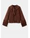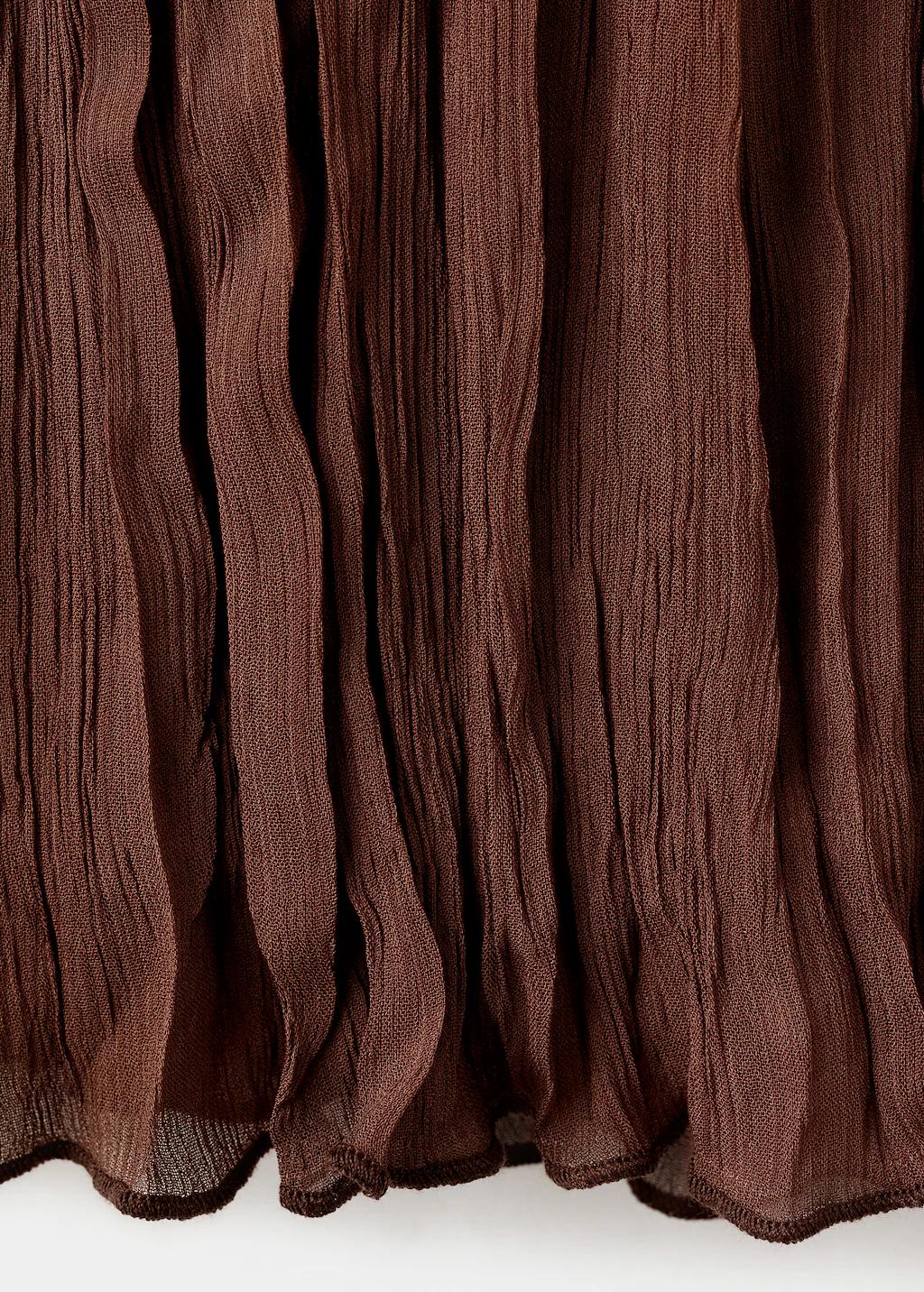 Tejido de gasa. Diseño recto. Detalle de volantes en el cuello. Cuello redondo. Manga larga con volante en los puños. Sin cierre