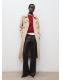 Efecto piel. Diseño largo. Estilo flare. Tiro medio. Trabillas. Cinco bolsillos. Dos bolsillos de ribete en la parte posterior. Cierre delantero de cremallera y botón. Forro interior