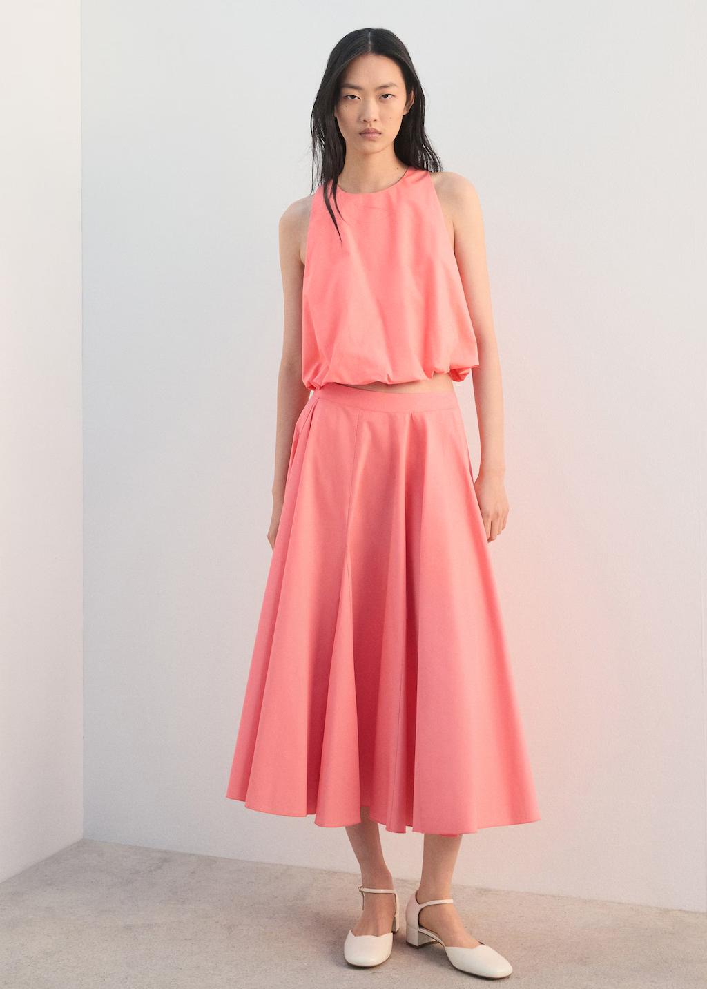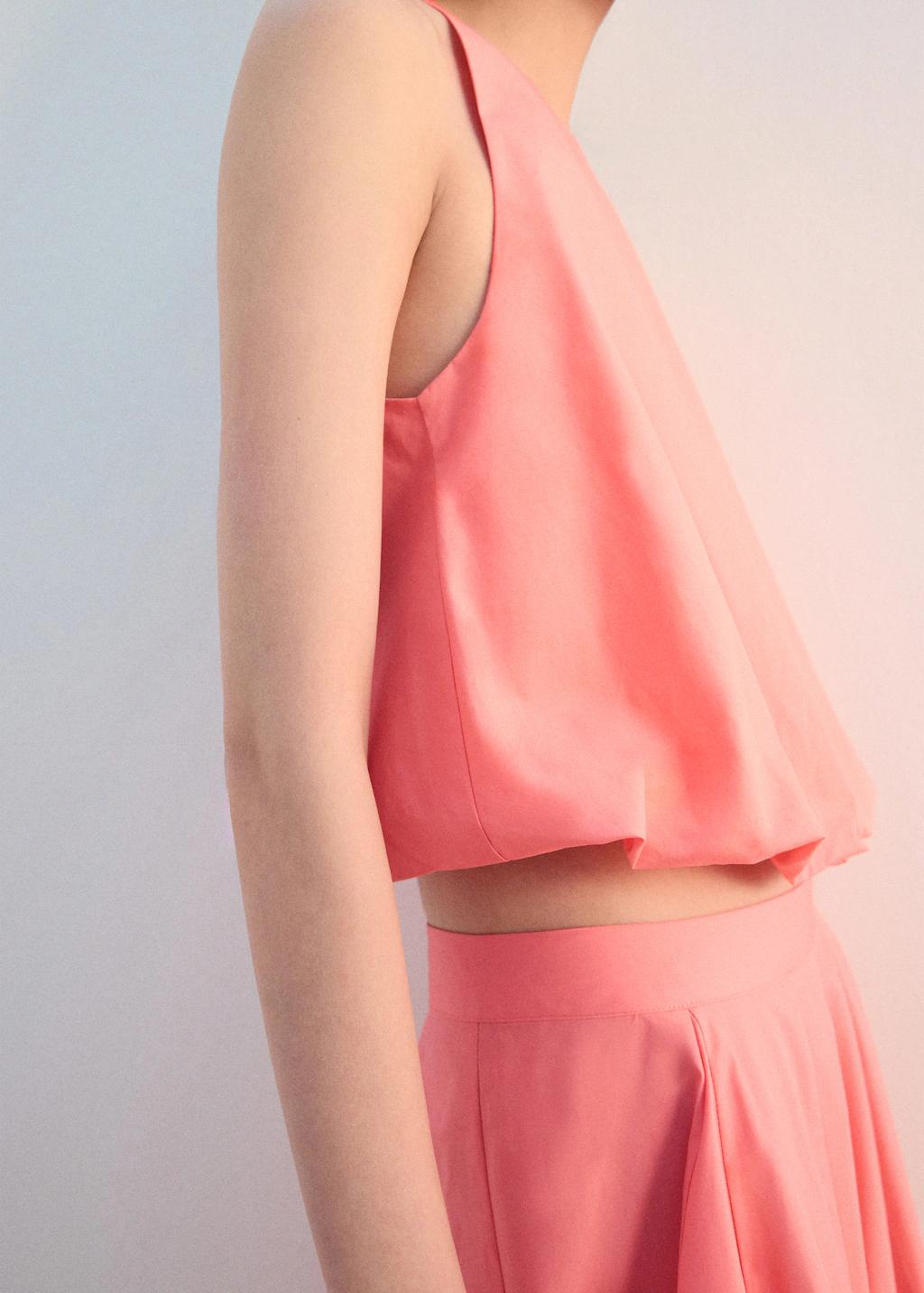 Diseño crop. Diseño evasé. Bajo acabado globo. Cuello redondo. Sin mangas. Tirantes anchos. Cierre de cremallera en la parte posterior
