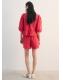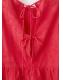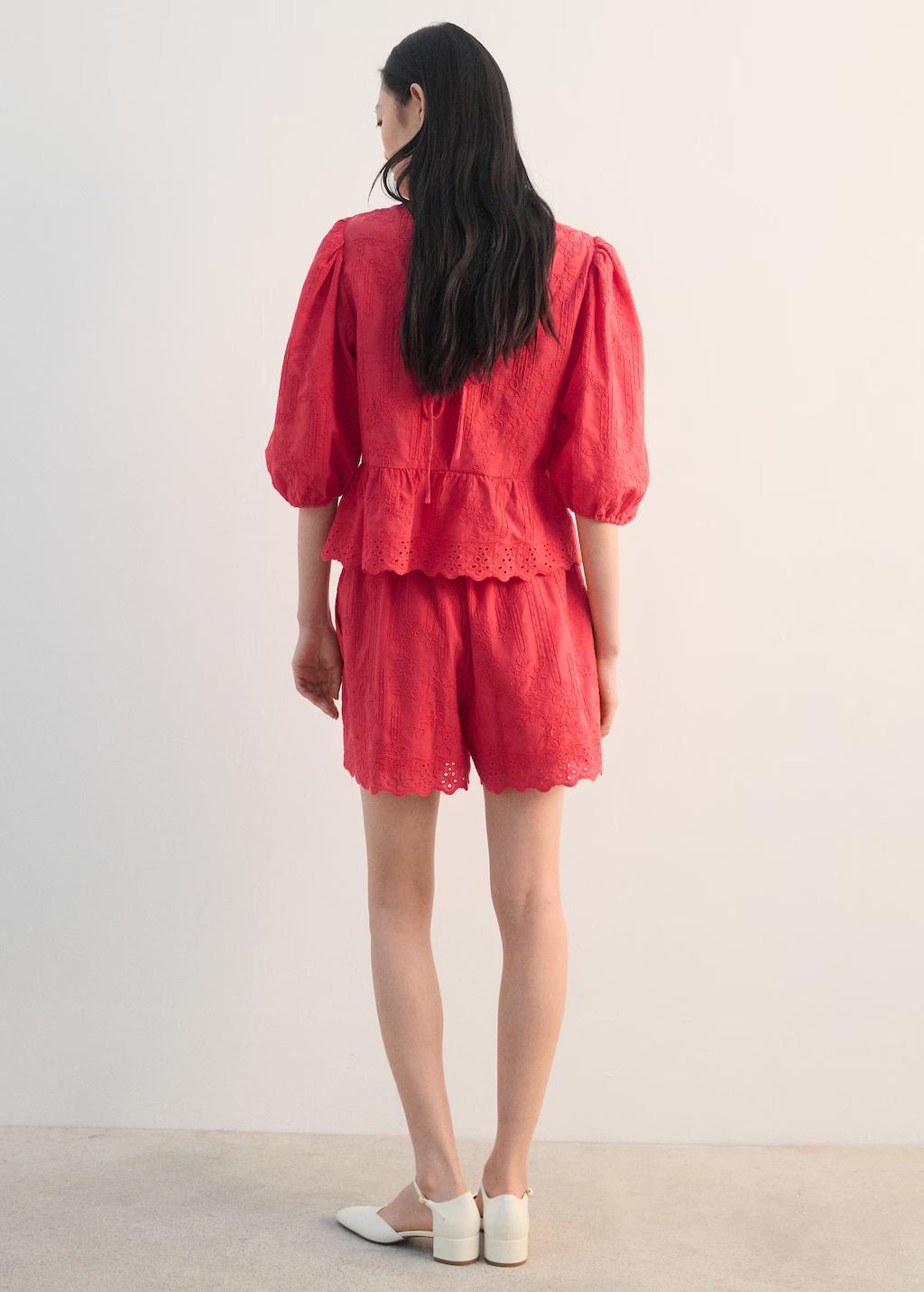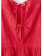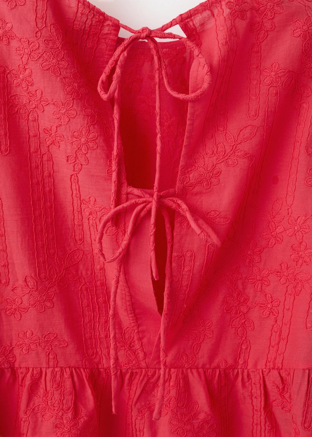 Tejido 100% algodón. Diseño recto. Detalles florales bordados. Cuello redondo. Manga tres cuartos. Cierre de lazos en la parte posterior. Total look