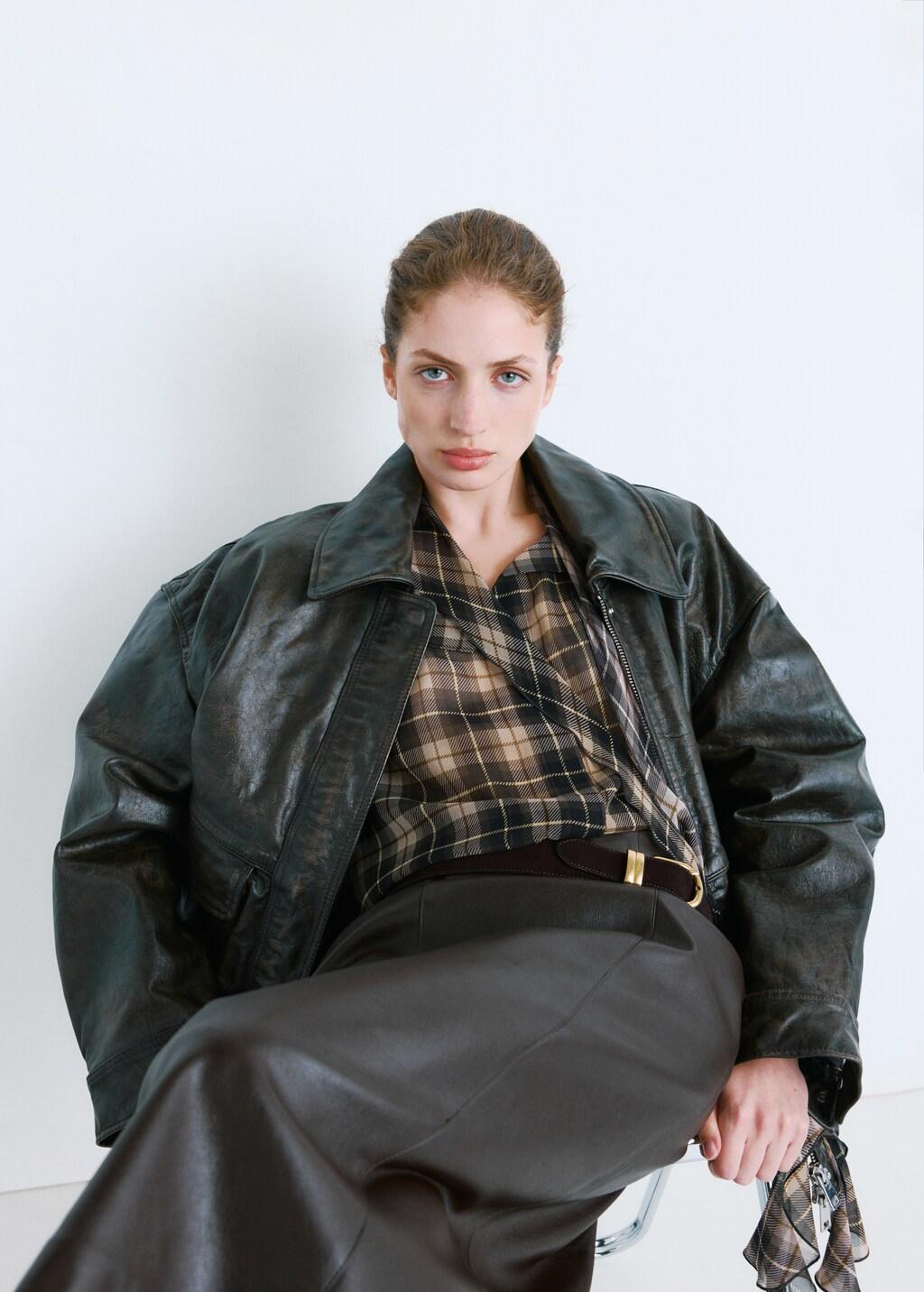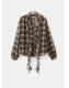Diseño recto. Estampado de cuadros. Cuello camisero. Adorno de fular en el cuello. Manga larga con puños abotonados. Cierre delantero con botones. Exclusivo Online