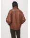 100% piel ovino. Diseño oversize. Cuello camisero. Manga larga con puños abotonados. Dos bolsillos de ribete laterales. Bajo fruncido elástico. Cierre delantero de cremallera y botones a presión oculto con tapeta. Forro interior