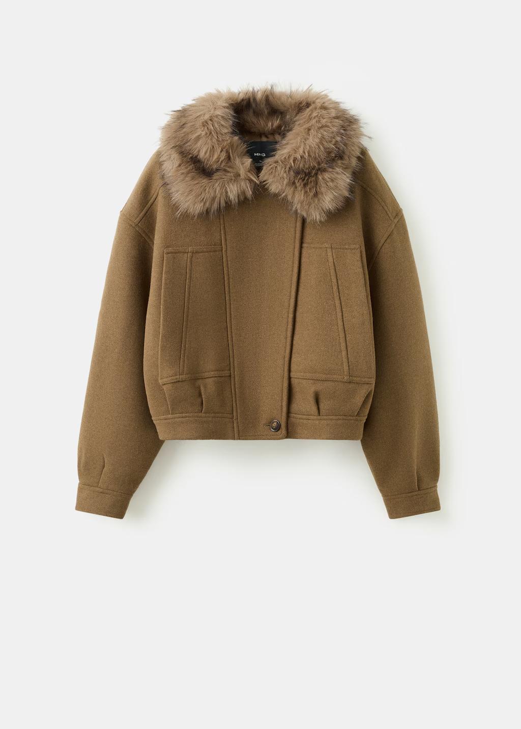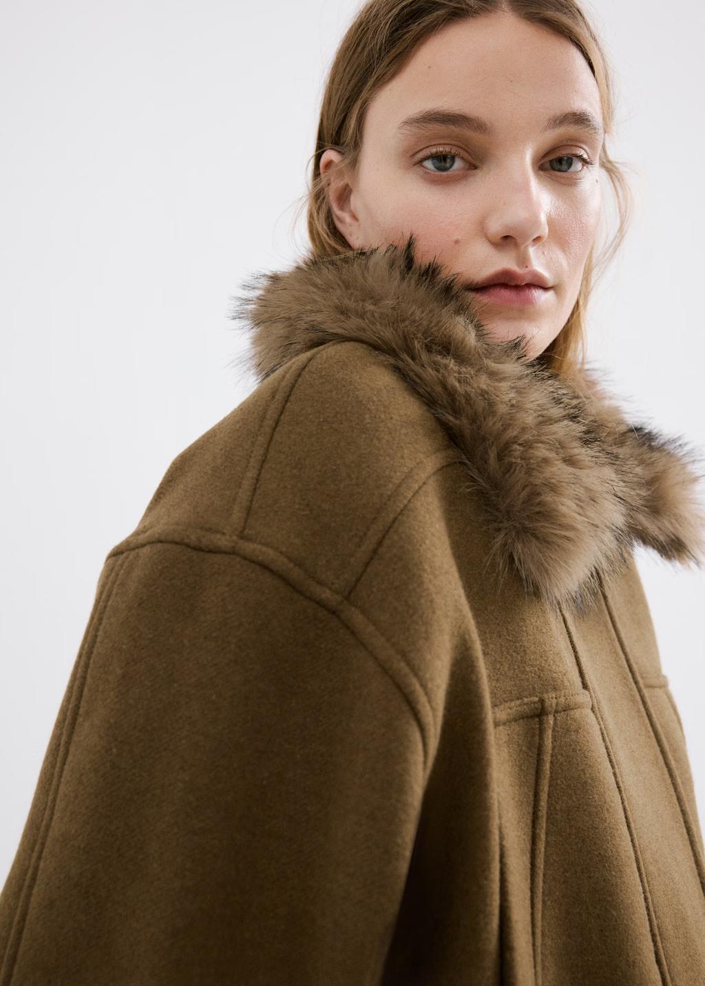 Tejido mezcla de lana. Diseño recto. Diseño corto. Cuello de pelo. Manga larga. Cierre delantero con cremallera. Bajo fruncido elástico. Forro interior. Exclusivo Online
