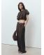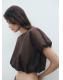 Confeccionada en tejido mezcla de ramio y algodón, esta prenda presenta un diseño crop con estilo globo. El cuello redondo y las mangas cortas abullonadas complementan su estructura, convirtiéndola en una pieza esencial para quienes buscan un equilibrio entre estructura y fluidez