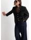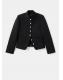 Diseño recto. Cuello de tira. Manga larga con puños abotonados. Cierre de botones en la parte delantera. Dos bolsillos de ribete frontales. Forro interior. Disponible Plus