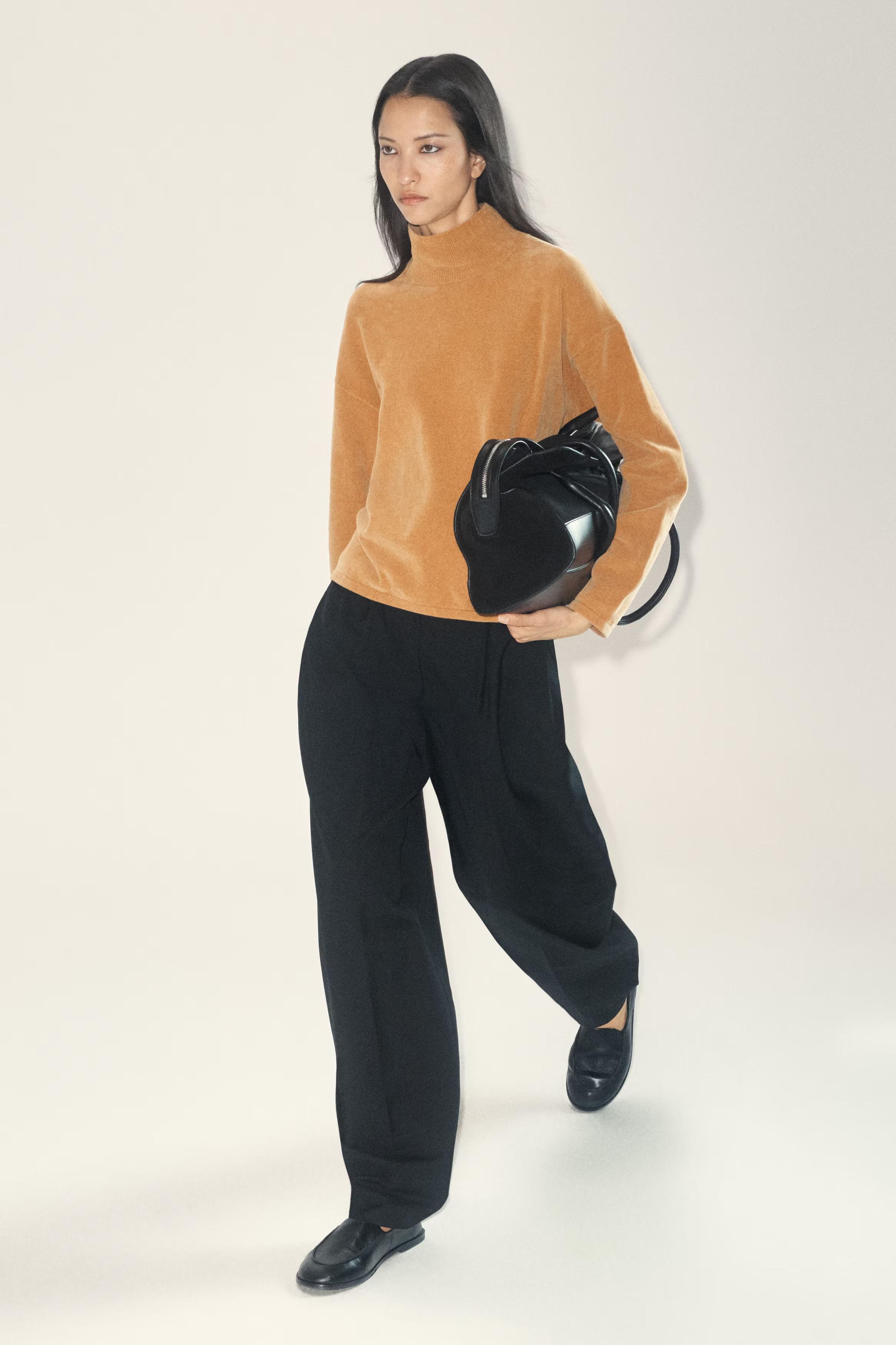This season, the womenswear team channel '90s design codes through rich texture and pared-back silhouettes. Offered in an enduring camel tone, this jumper is crafted from tactile cotton-blend chenille and finished with a ribbed funnel neckline.\u0026nbsp;Regular fitRecycled polyamide is polyamide made from textile waste in production\u0026nbsp;Shell: 88% Cotton, 11% Recycled polyamide (Recycled nylon), 1% Elastane. Excluding trims / Machine wash\u0026nbsp;Front length of size S is 56cm / Model wears a size S