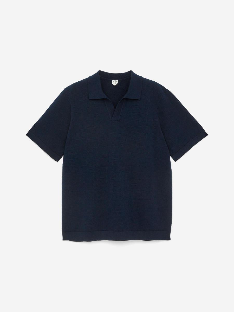 Cotton polo shirt knitted with a textured surface. A short-sleeve style featuring a v-neck with collar. Regular fit.ARKET/Men's clothes/Men's knitwear/Men's polo shirts