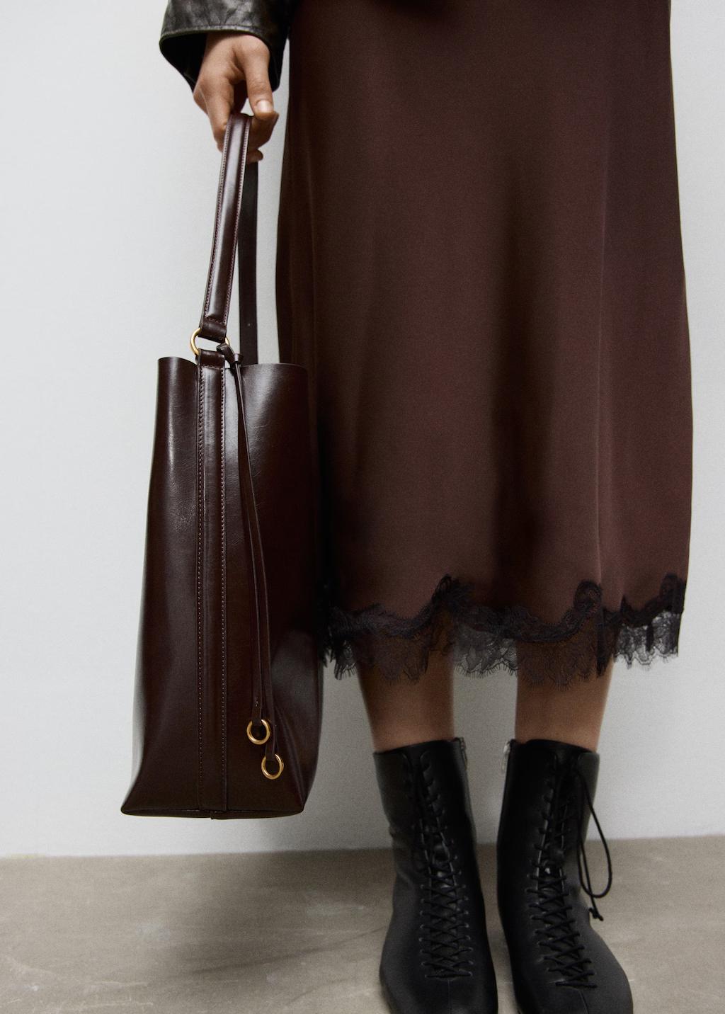 Asa de hombro. Tamaño mediano. Acabado brillante. Cierre de botón magnético. Bolsillo interior con cierre de cremallera. 38.0x33.0x14.0 cm (Largo x Alto x Ancho)