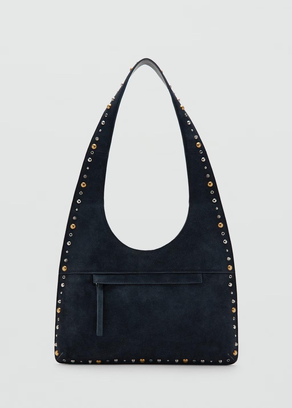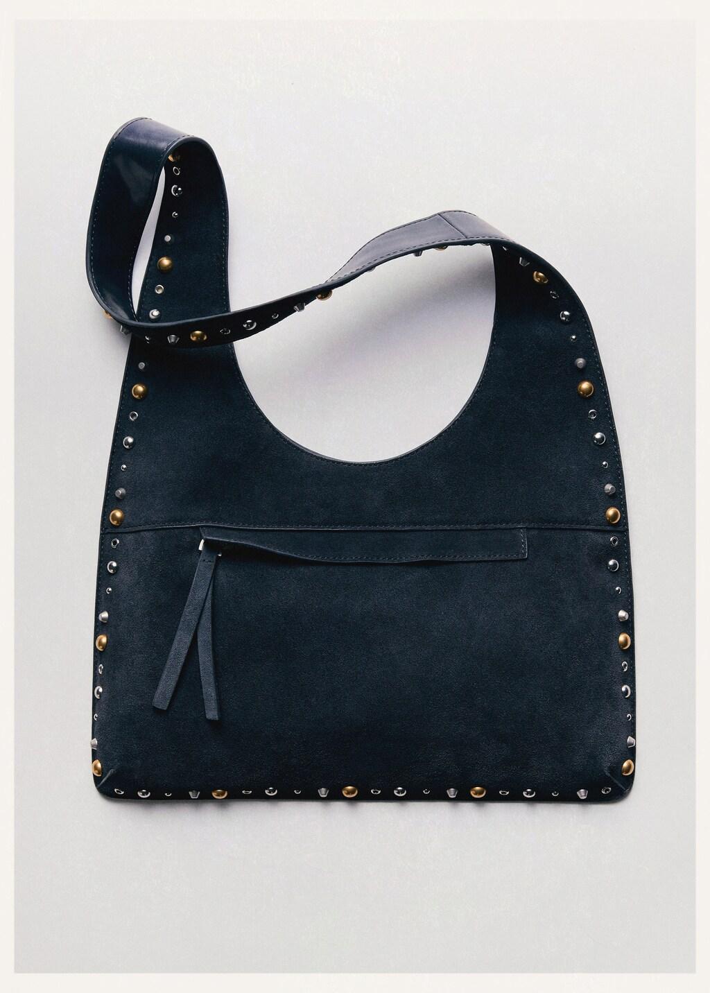Tamaño mediano. 100% piel bovino. Piel de serraje. Asa de hombro. Detalle de tachuelas. Bolsillo exterior cierre cremallera. Bolsillo interior con cierre de cremallera. Sin cierre. Forro interior. Exclusivo Online. 33.0x53.0x3.0 cm (Largo x Alto x Ancho)