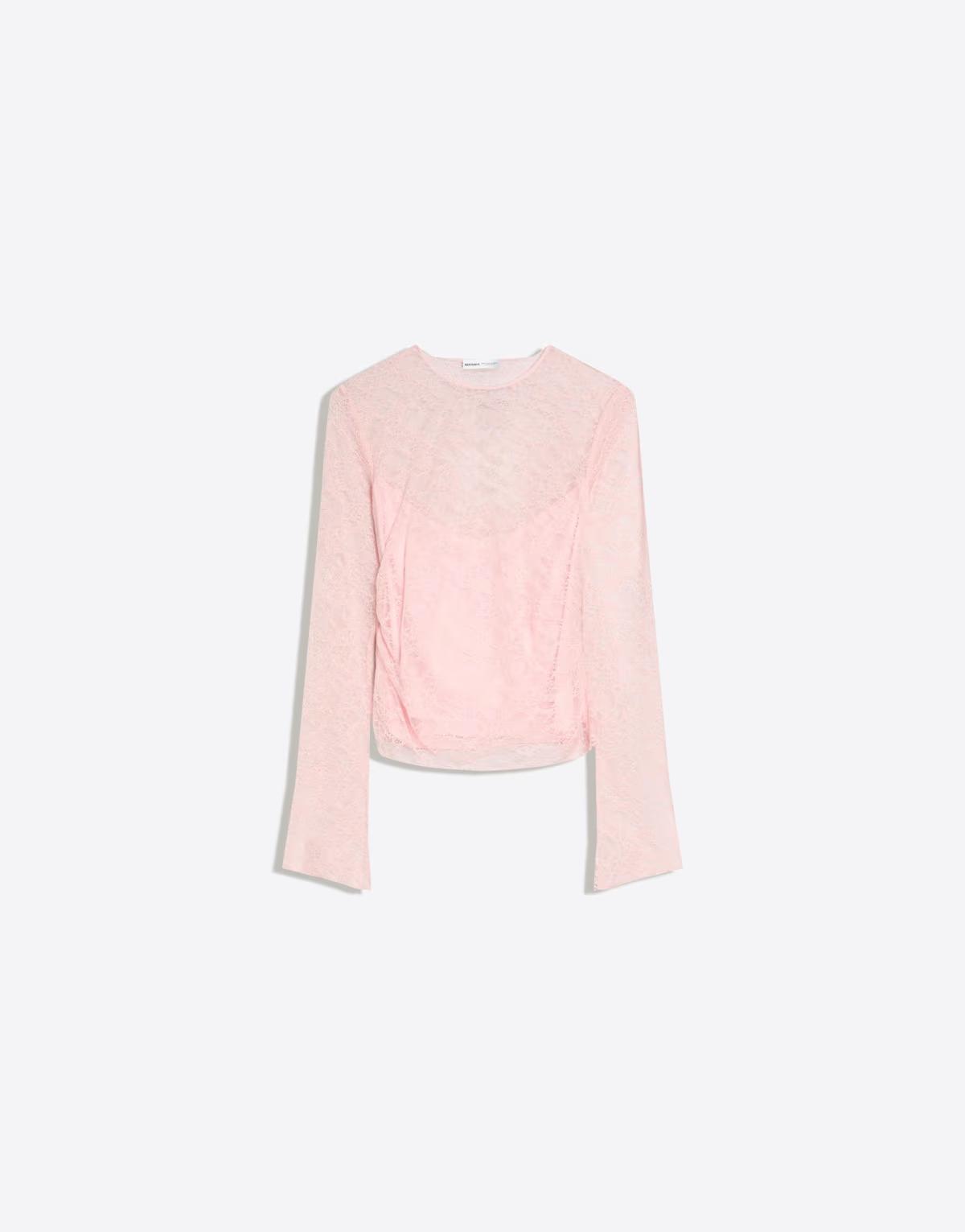 Bershka Long sleeve lace t-shirt in pink