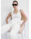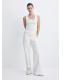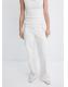 Tejido de algodón estilo tejano vaquero. Diseño wide leg. Diseño largo. Tiro alto. Cierre de botones laterales. Dos bolsillos traseros de ribete