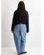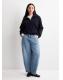 Tejido de algodón estilo tejano vaquero. Diseño largo. Diseño balloon. Estilo barrel. Tiro alto. Trabillas. Cinco bolsillos. Cierre delantero de cremallera y botón. Largo interior 75 cm. Disponible Plus