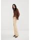 Tejido de algodón estilo tejano vaquero. Diseño largo. Diseño wide leg. Tiro alto. Trabillas. Cinco bolsillos. Cierre de botón y cremallera. Largo interior 84,5 cm