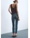 Tejido de algodón estilo tejano vaquero. Diseño crop. Slim fit. Tiro alto. Trabillas. Cinco bolsillos. Cierre delantero de cremallera y botón. Largo interior 75 cm