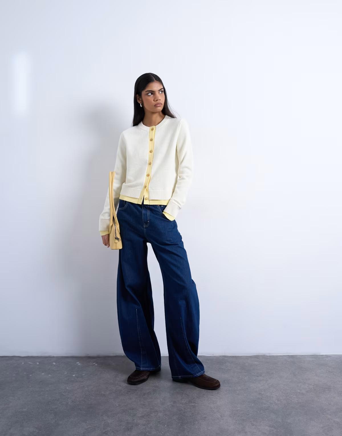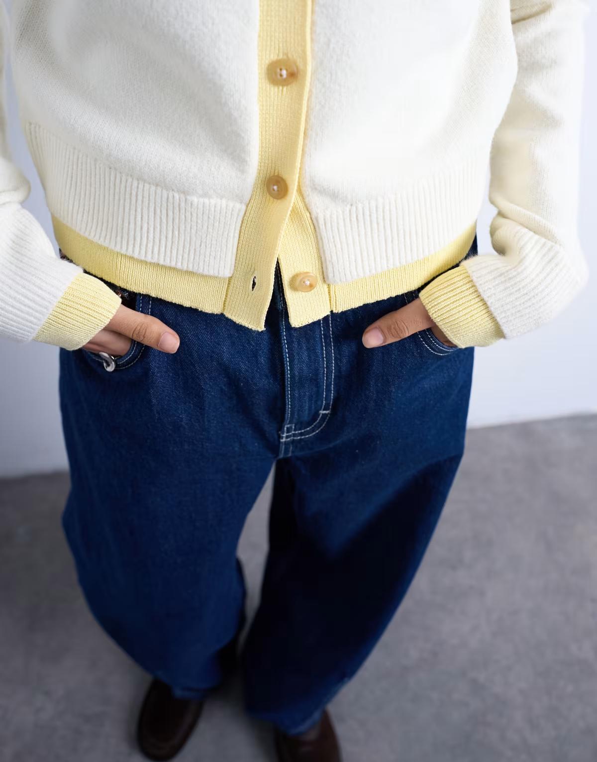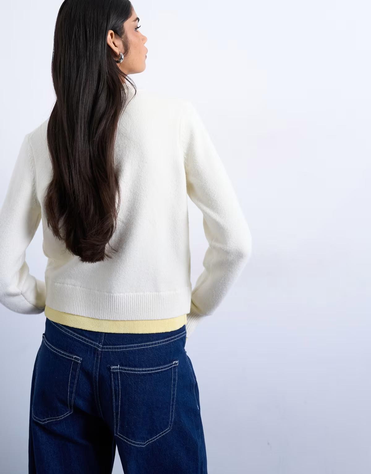 Topshop compact knitted double layer cardigan in ivory and yellow