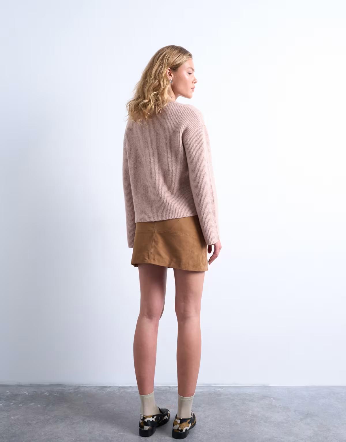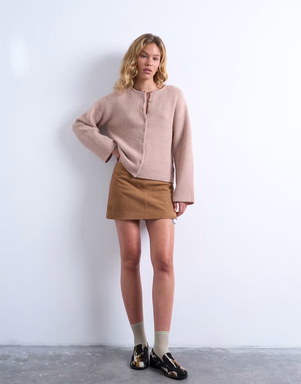 Topshop knitted easy ribbed relaxed cardigan in oat