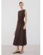 Tejido mezcla de lino y algodón. Diseño midi. Cuello redondo. Sin mangas. Tirantes anchos. Falda cruzada. Lazo ajustable. Cierre de botón en el cuello. Disponible Plus