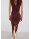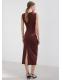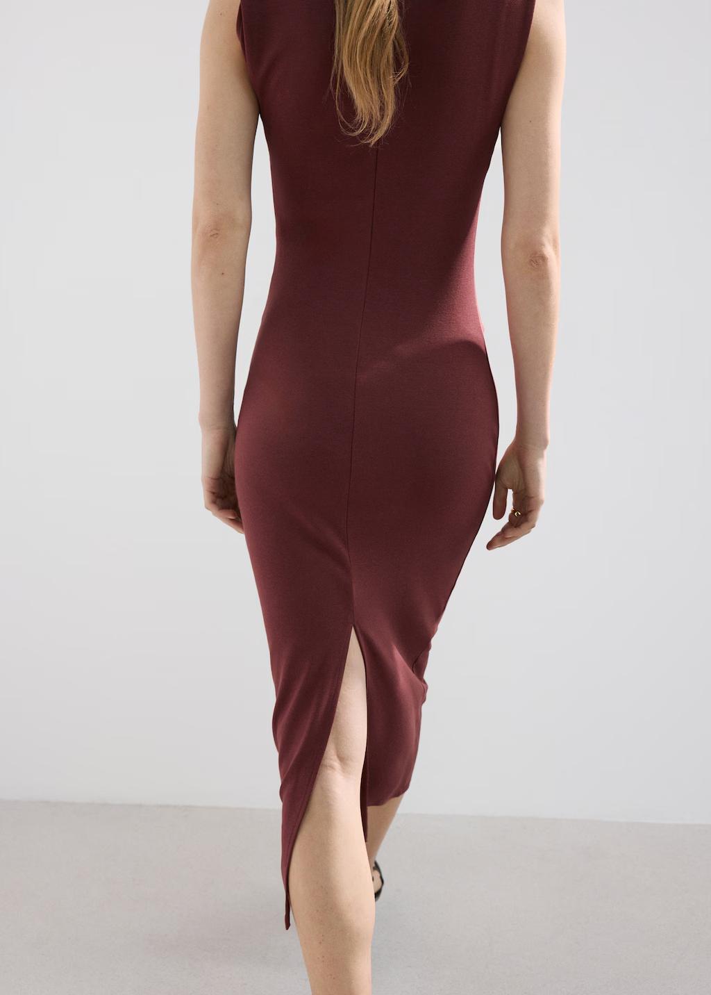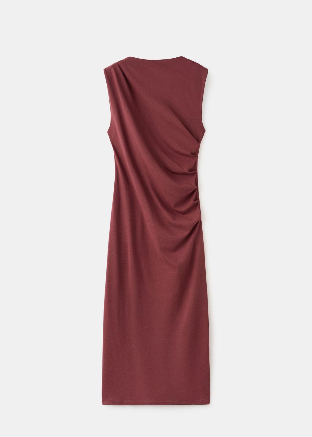 Tejido mezcla de modal y algodón. Diseño largo. Diseño recto. Detalles drapeados. Cuello redondo. Sin mangas. Tirante ancho. Detalle de abertura en la parte posterior. Sin cierre