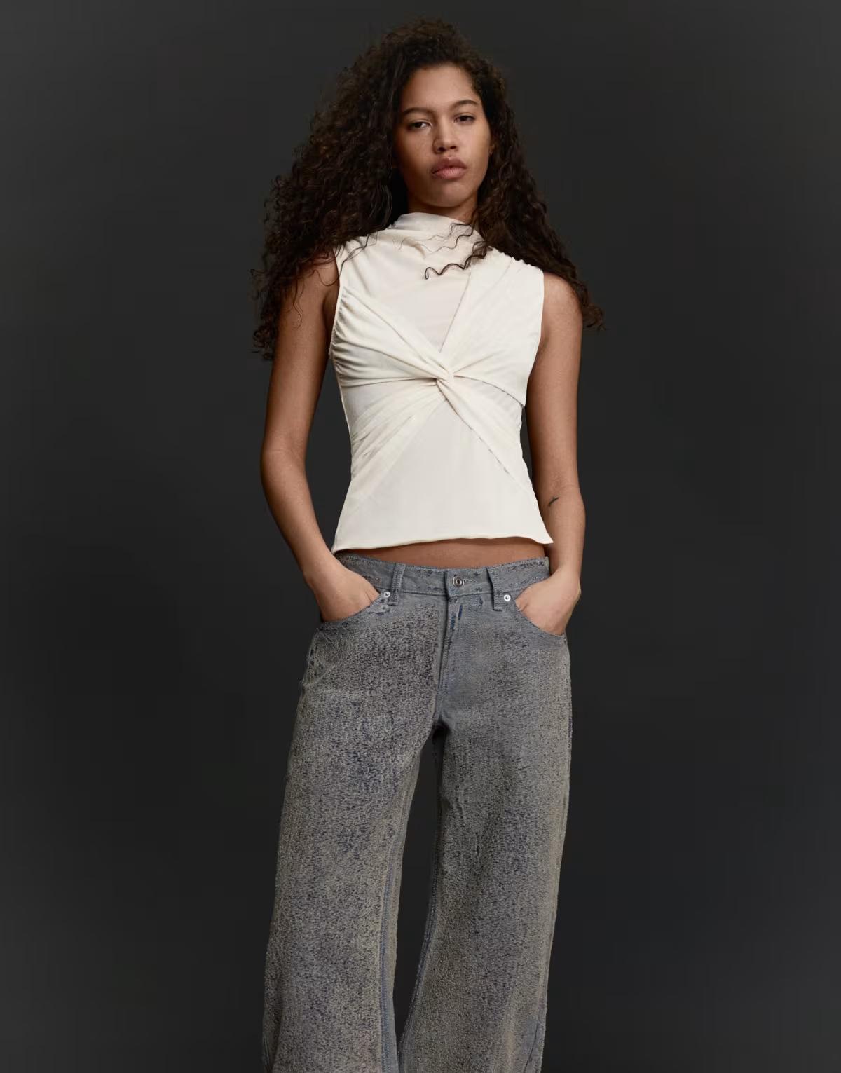 Bershka Sleeveless tulle top in ecru