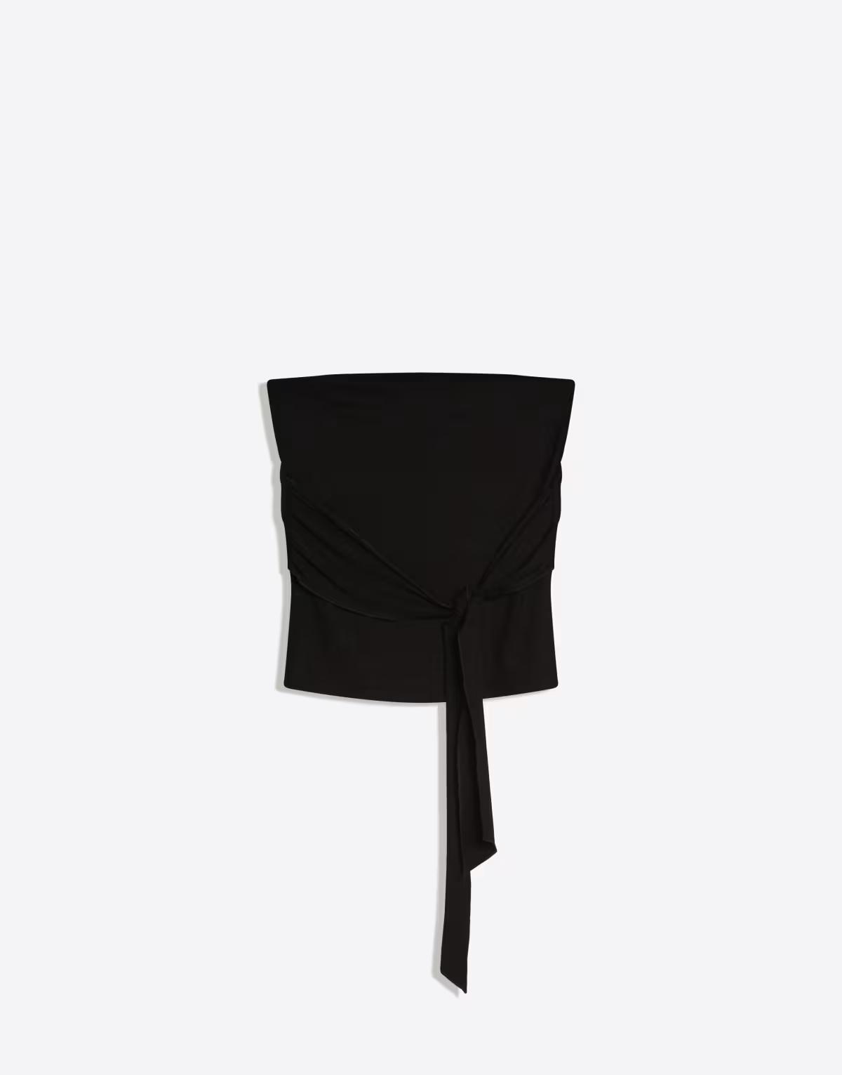 Bershka Bandeau top with tie detail in black