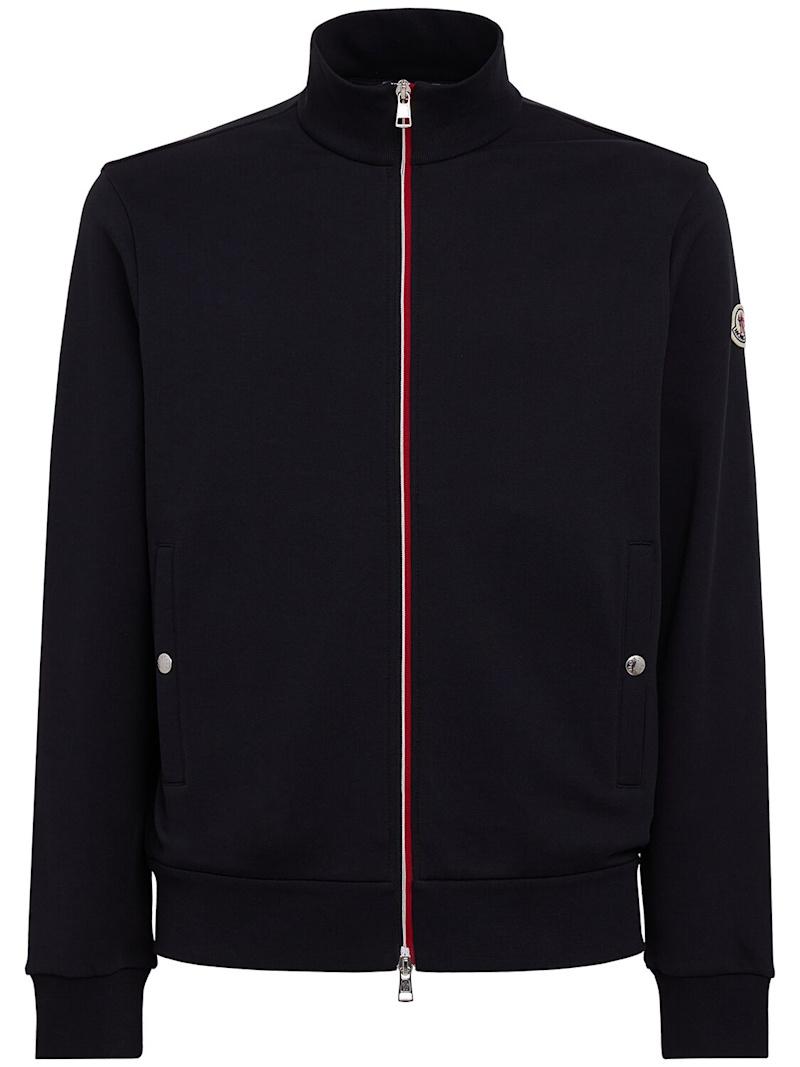 Tricolour-Trimmed cotton sweatshirt - 午夜蓝 - 男士 - Moncler - Crafted from cotton fleece.