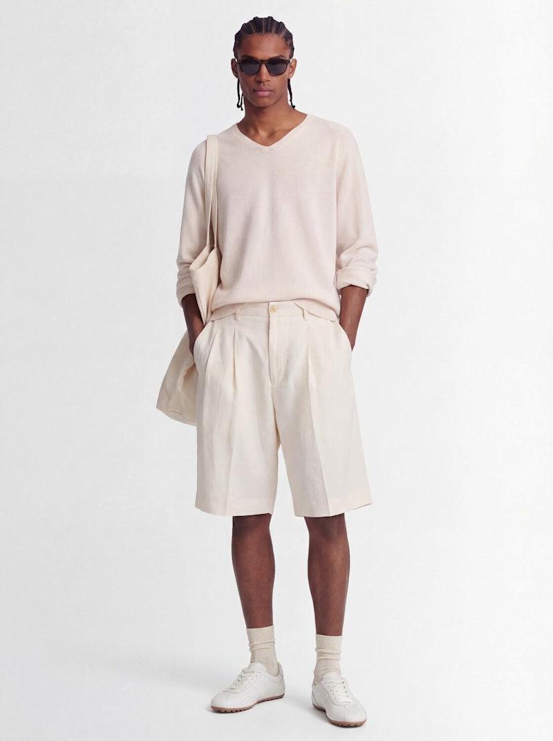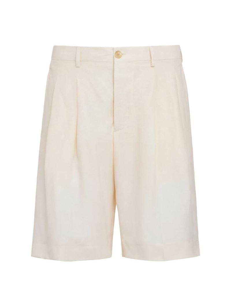 Viscose & linen shorts - 黑色 - 男士 - Laneus - Front button and concealed zip closure.