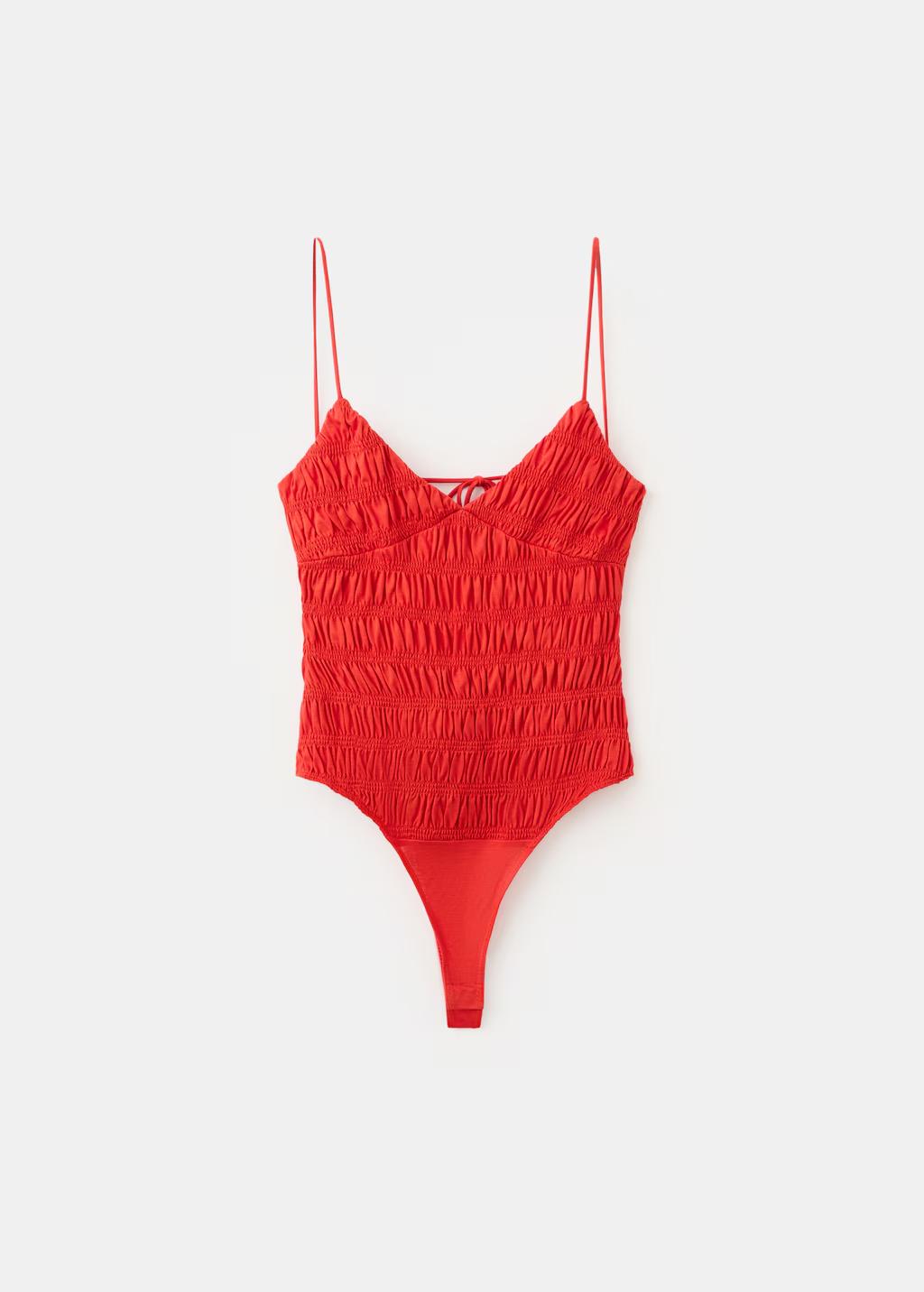 Tejido de lyocell. Diseño fruncido. Tirantes ajustables de nudo. Espalda abierta. Cierre de botones. Cierre de lazo en la espalda. Exclusivo Online. Colección Selection. Una selección de prendas refinadas, confeccionadas con tejidos de calidad para construir un armario femenino y contemporáneo