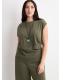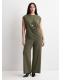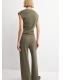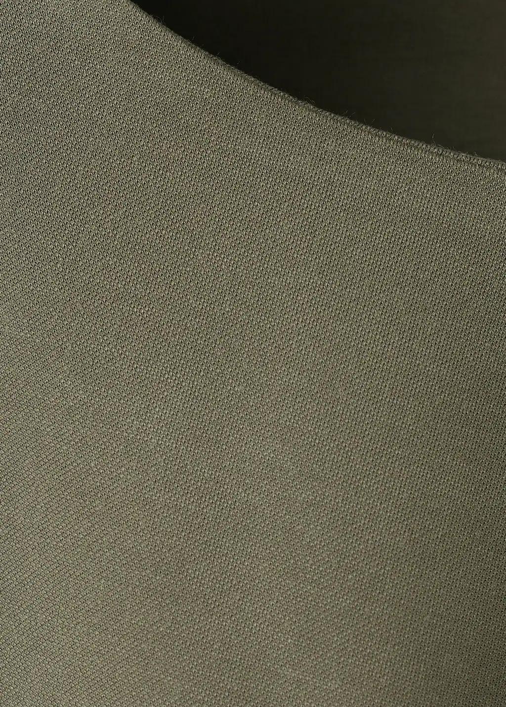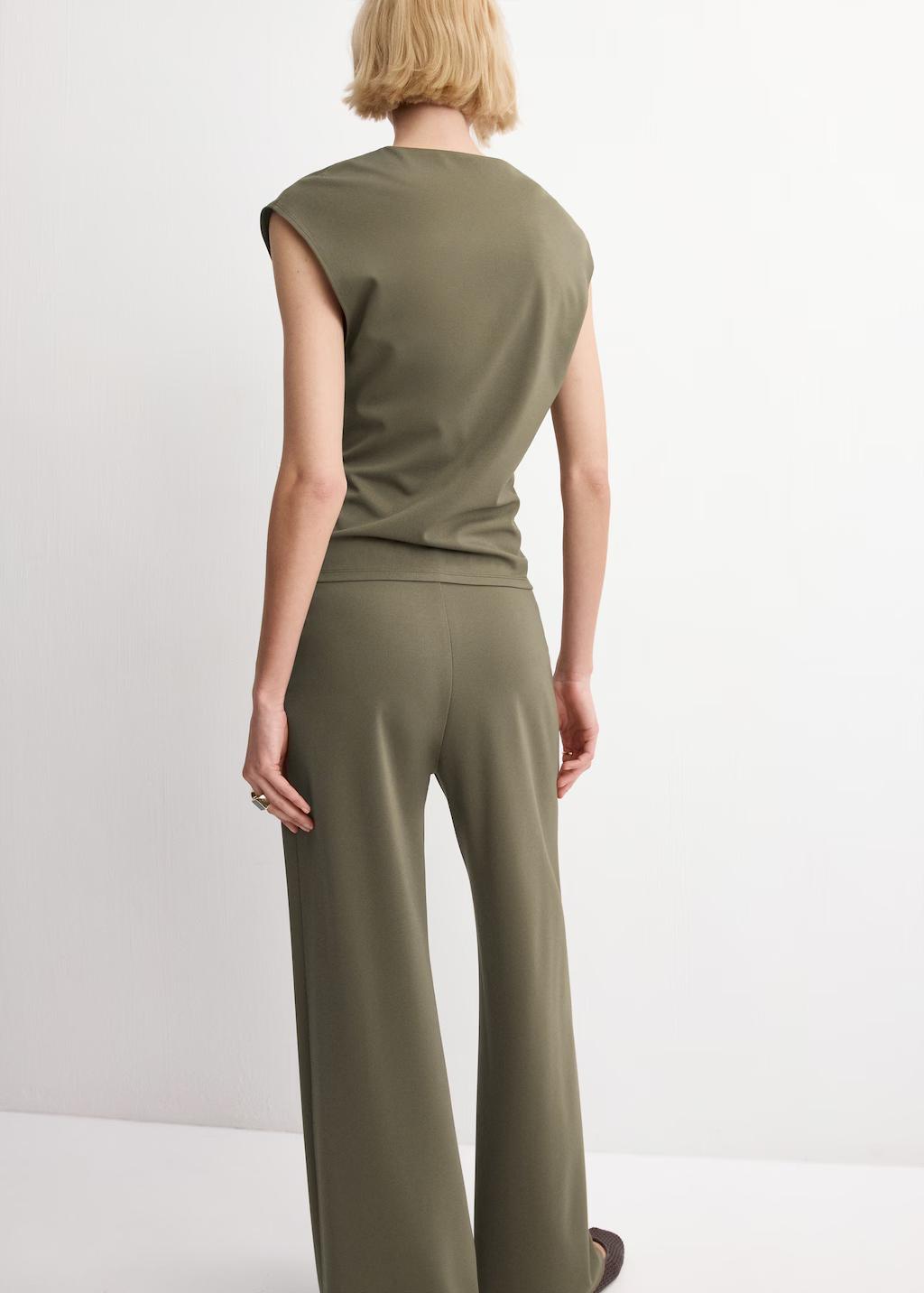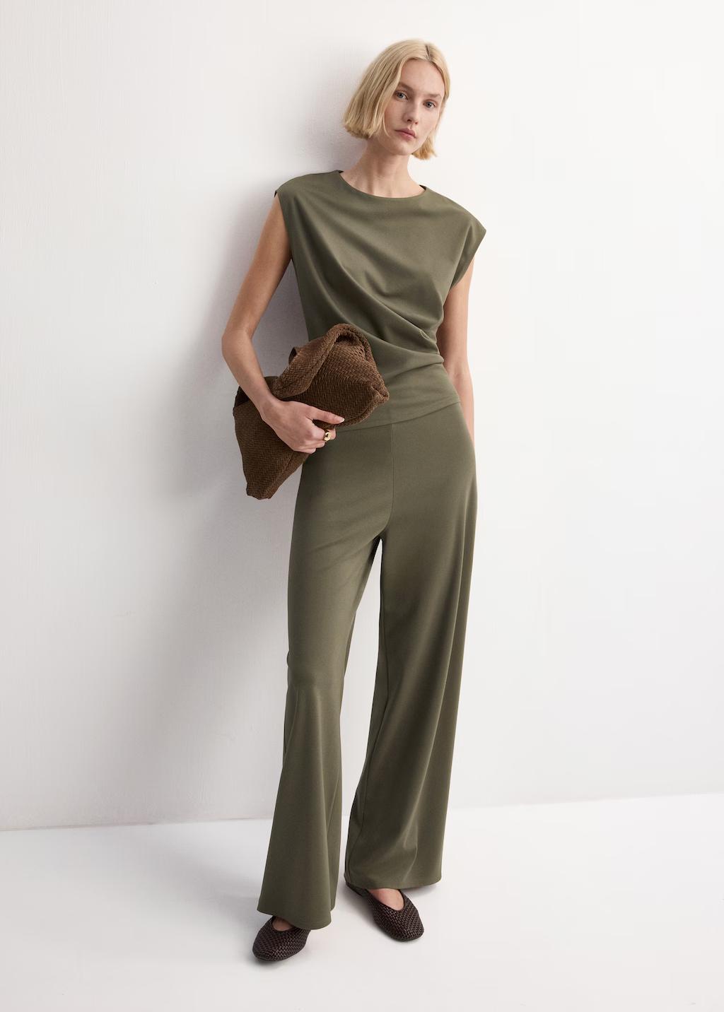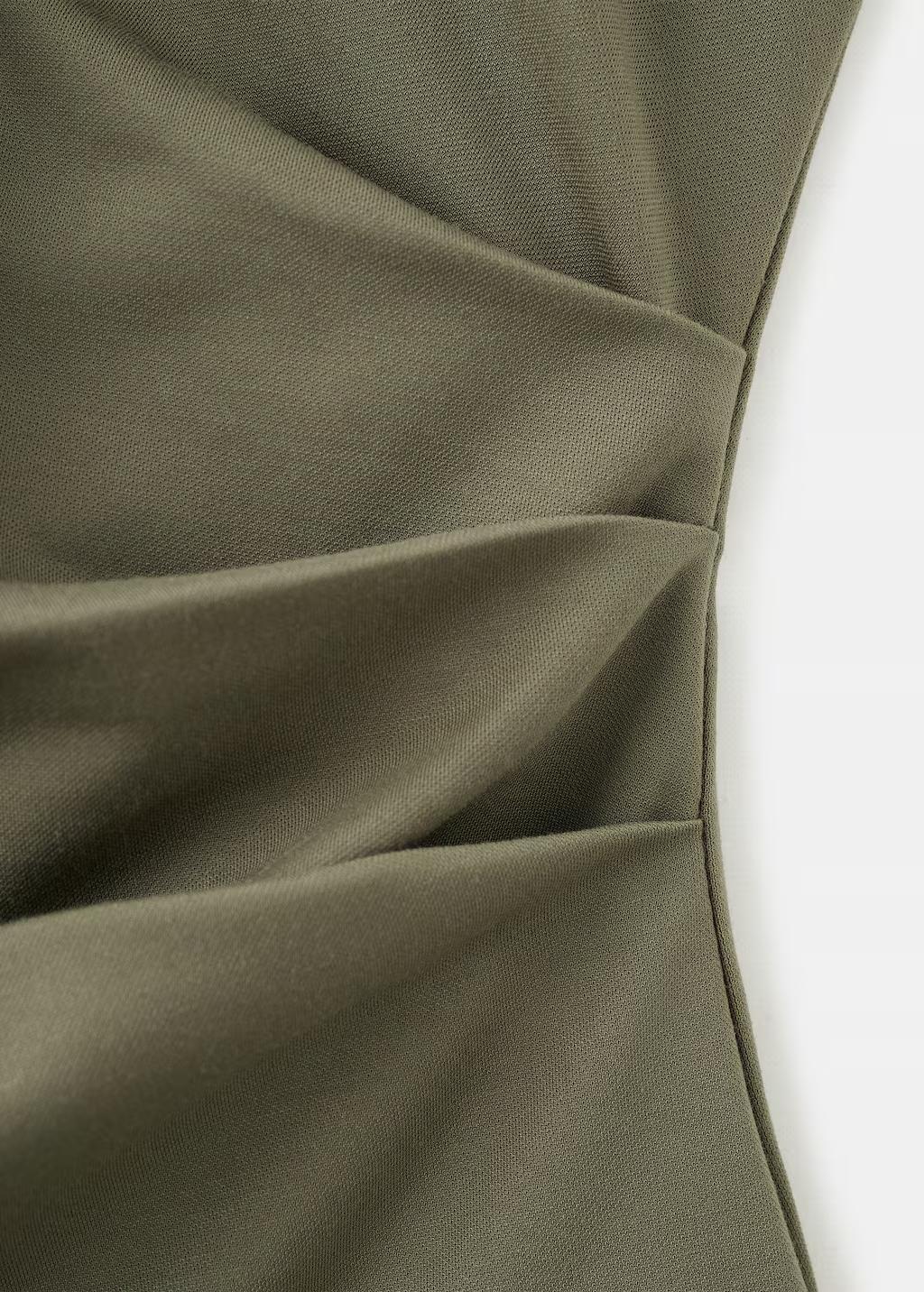 Tejido de punto fino. Panel fruncido en la cintura. Cuello redondo. Manga corta. Disponible Plus. Sin cierre. Total look