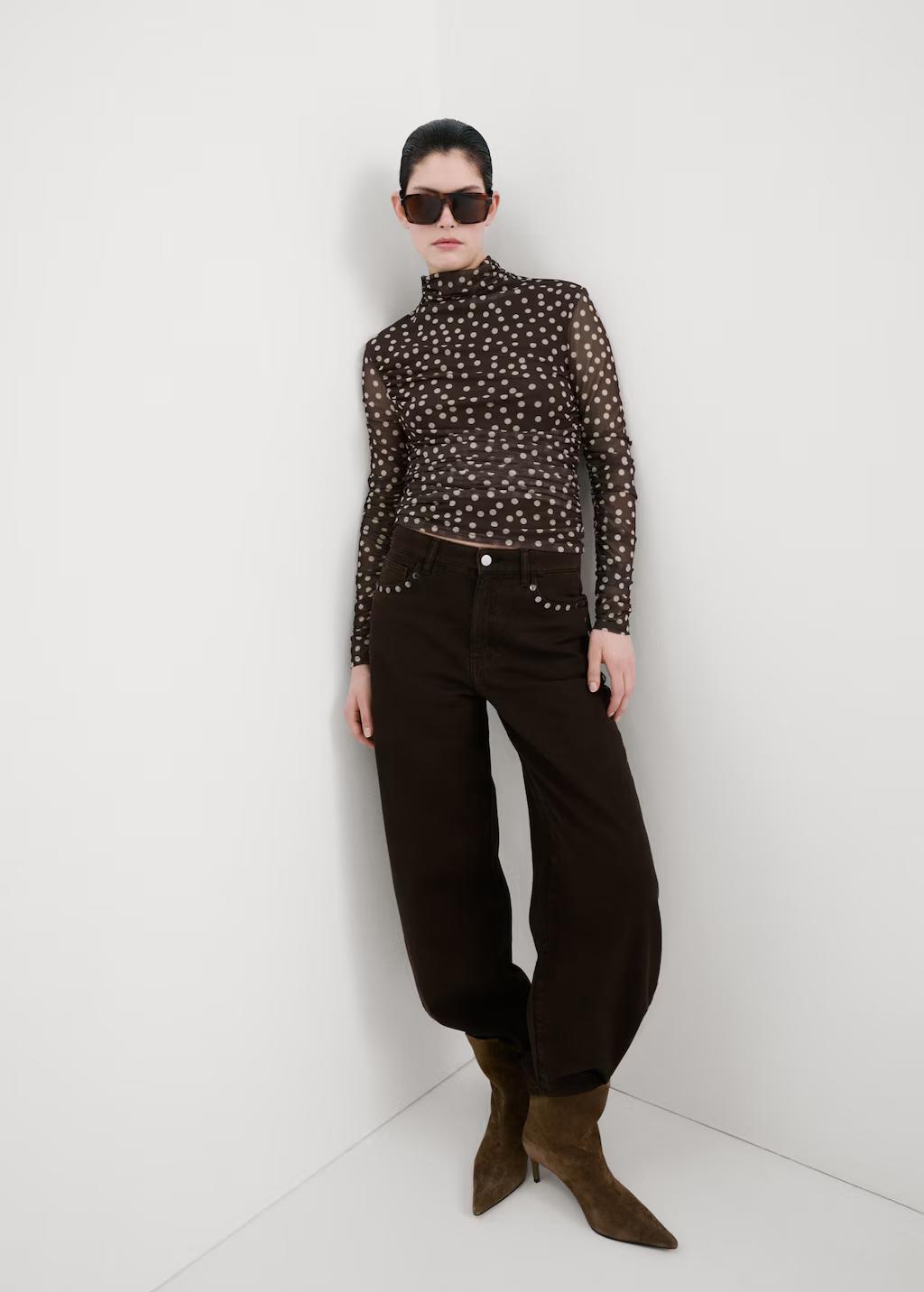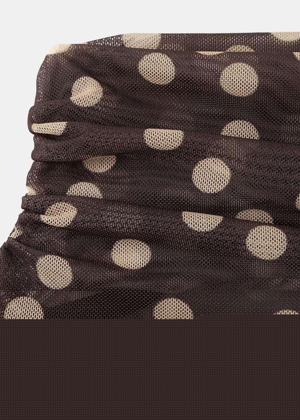 Diseño entallado. Estampado de lunares. Cuello alto con detalle fruncido. Manga larga fruncida. Detalle fruncido en la cintura. Sin cierre