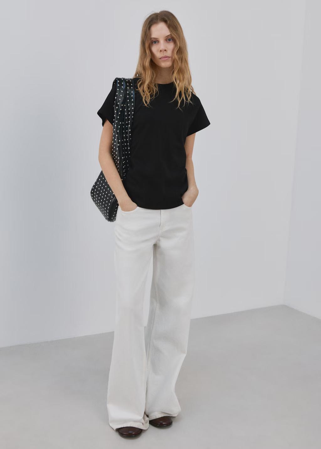 Tejido 100% algodón. Diseño recto. Cuello redondo. Manga corta. Sin cierre