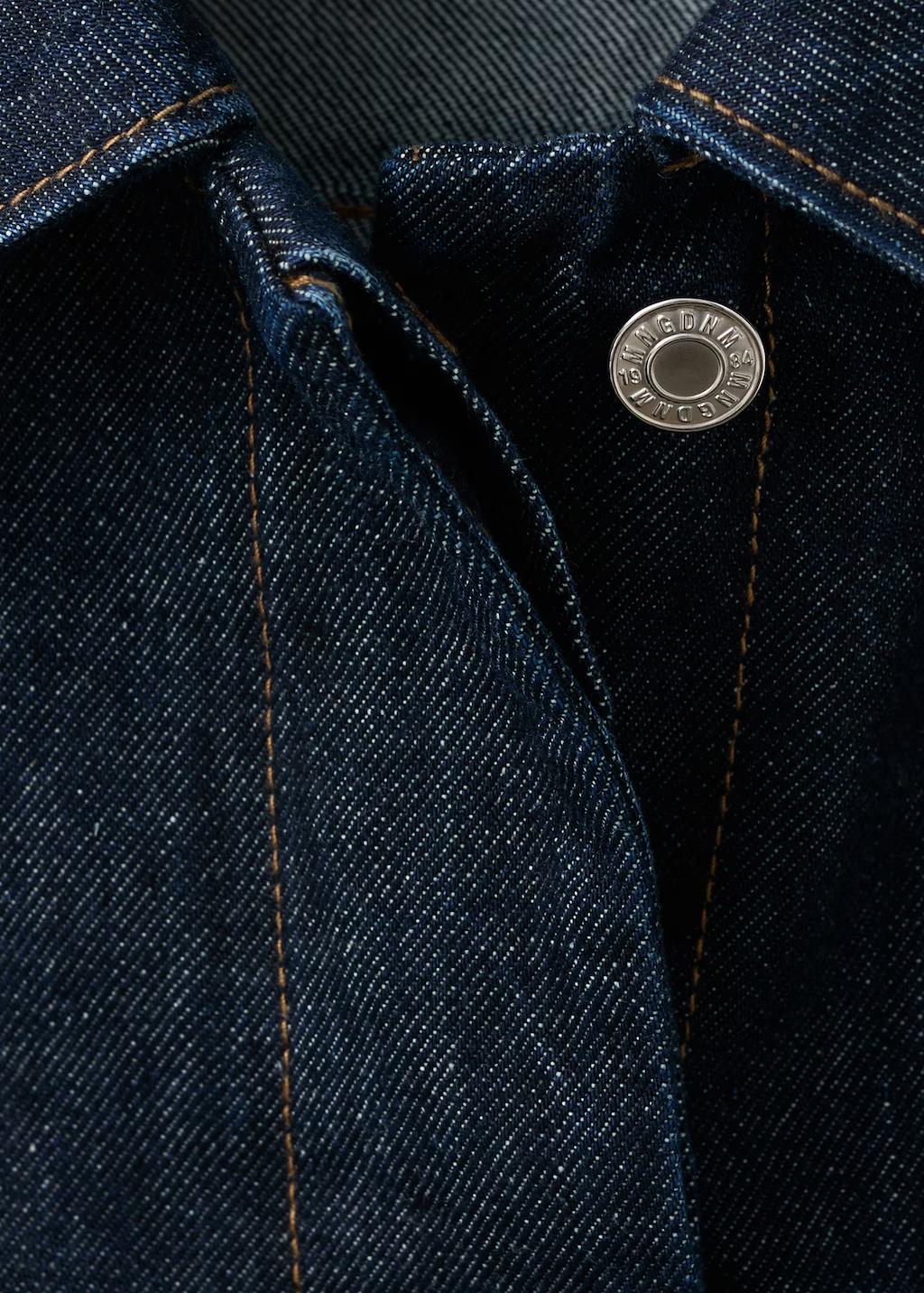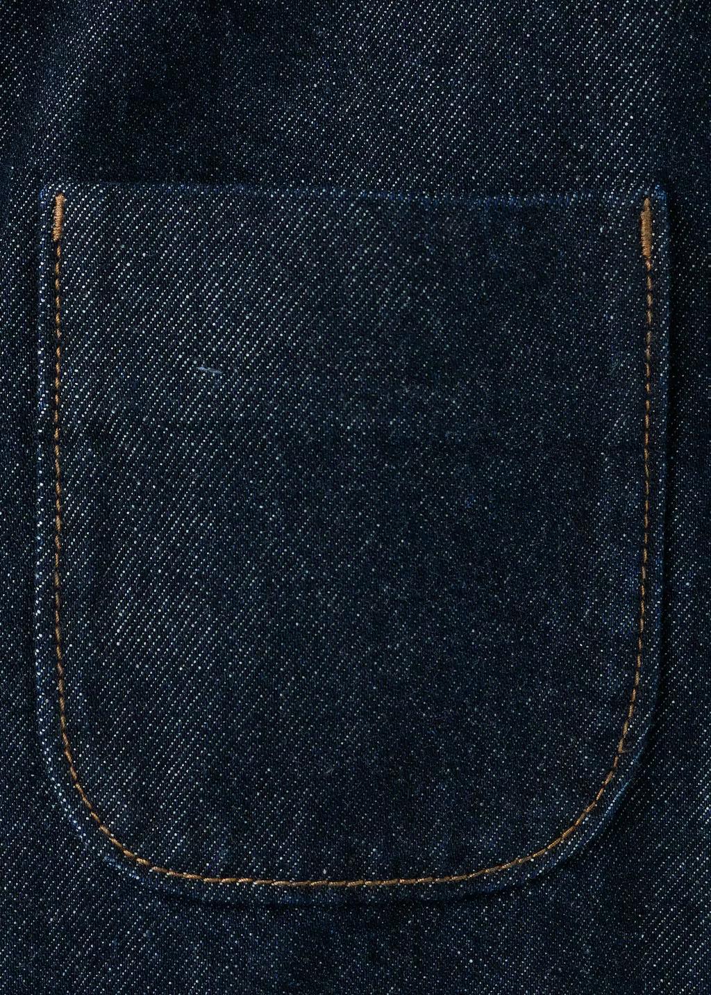 Tejido de algodón estilo tejano vaquero. Rinse wash. Diseño entallado. Manga larga. Cuello camisero. Dos bolsillos laterales. Bolsillo de parche en el pecho. Cierre delantero de botones oculto