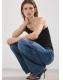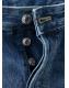 Tejido de algodón estilo tejano vaquero. Diseño largo. Diseño recto. Tiro bajo. Trabillas. Cinco bolsillos. Cierre de botones