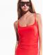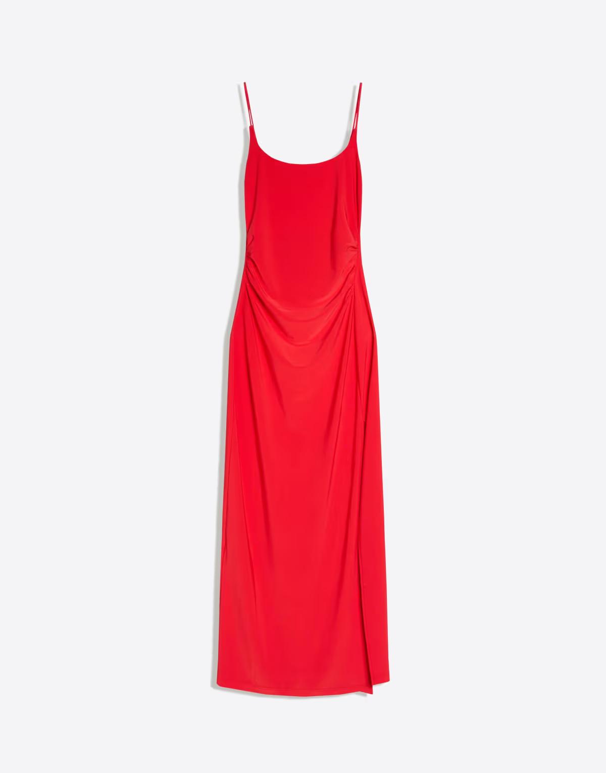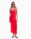 Bershka Gathered strap midi dress in coral