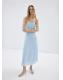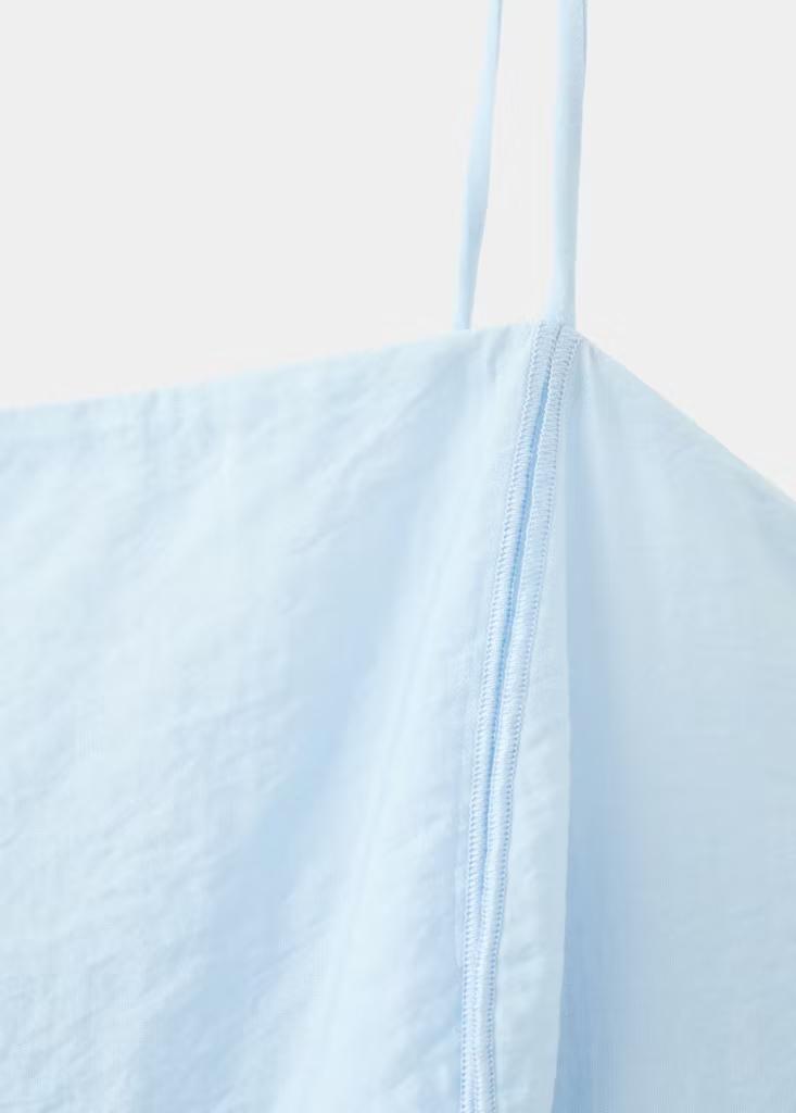 Tejido mezcla de algodón y lyocell. Diseño midi. Diseño evasé. Tirantes finos. Sin mangas