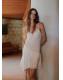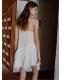 Diseño corto. Diseño evasé. Detalle de volantes. Detalles encaje. Cuello redondo. Sin mangas. Tirantes finos. Sin cierre. Forro interior