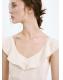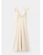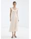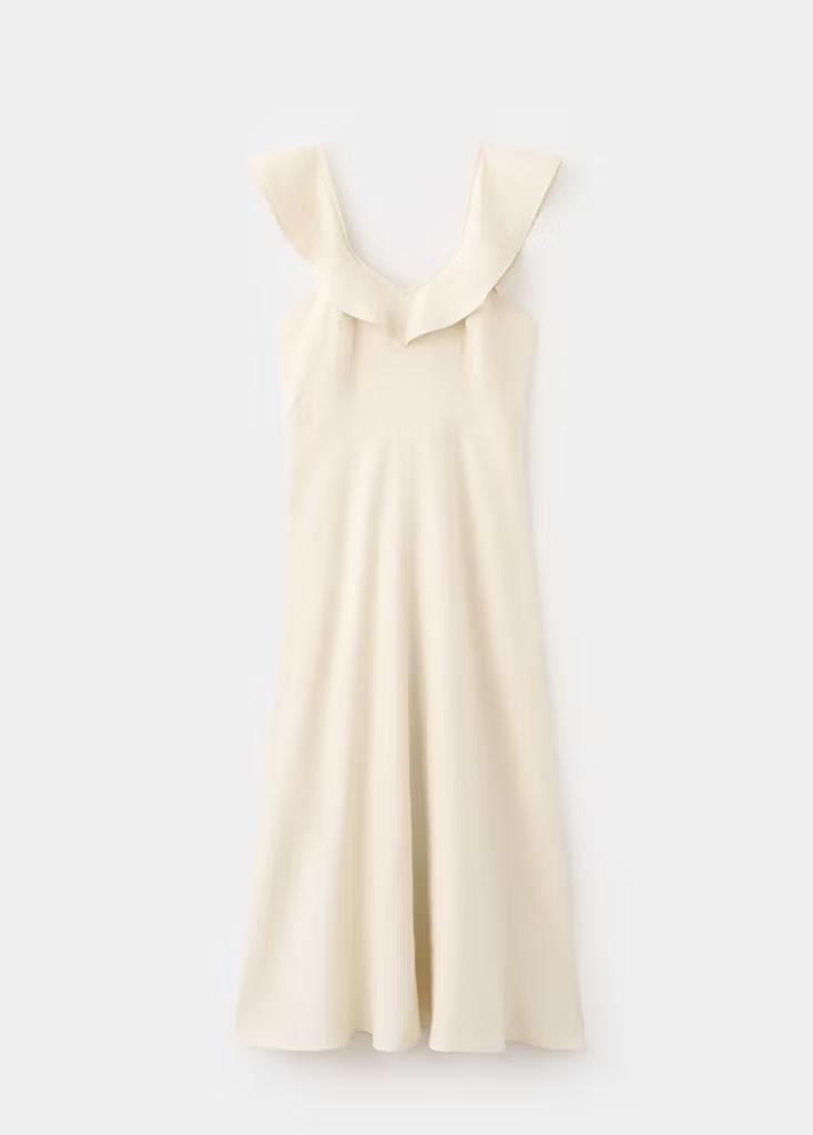 Tejido mezcla de lino. Diseño midi. Diseño evasé. Detalle de volantes. Cuello pico. Sin mangas. Tirante ancho. Cierre de cremallera lateral. Forro interior