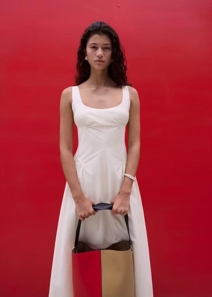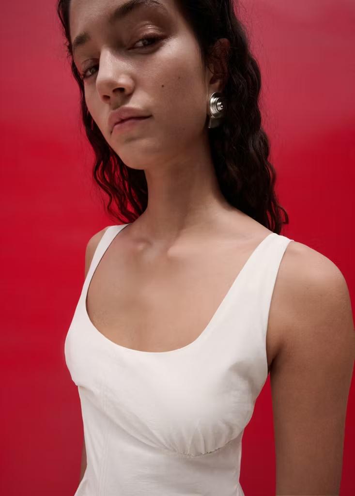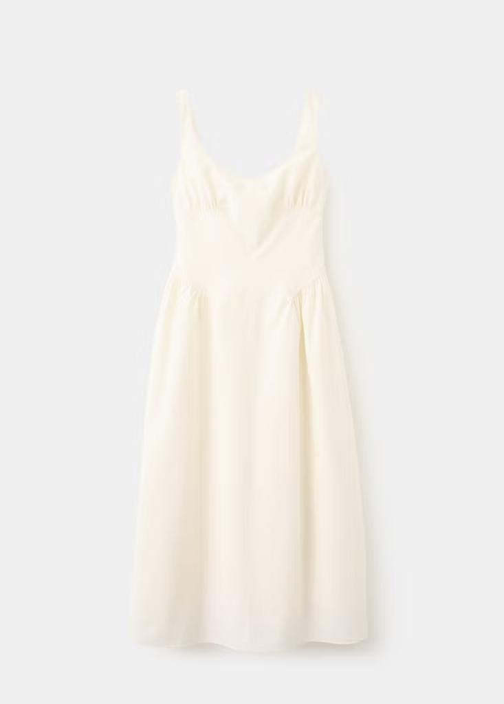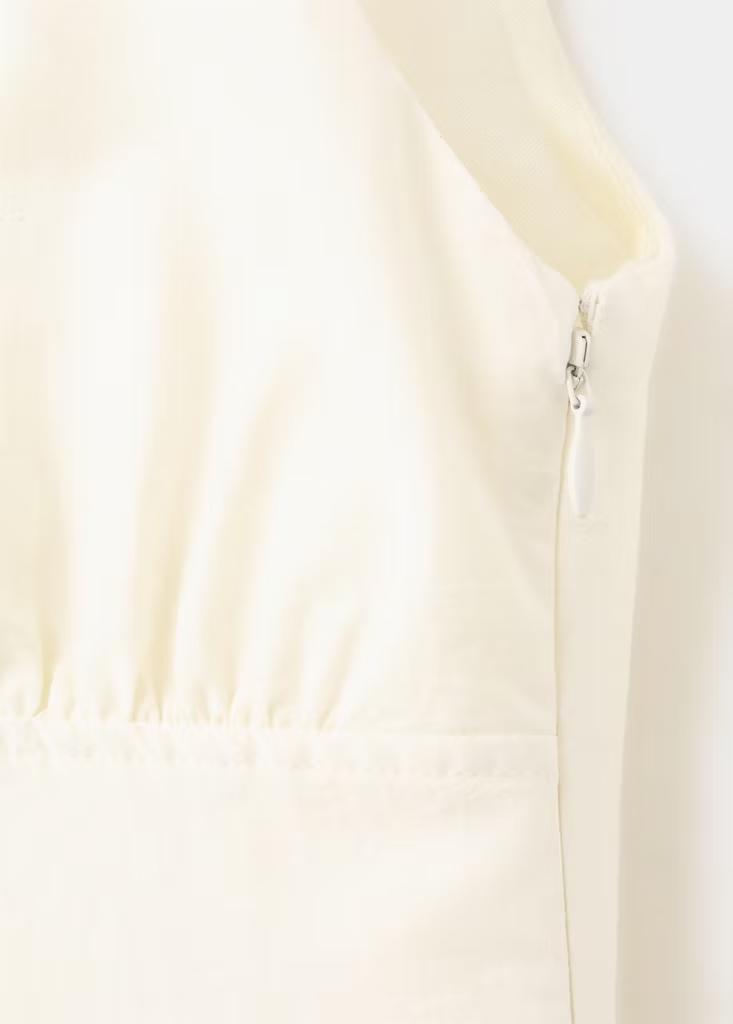 Tejido de algodón. Diseño midi. Diseño evasé. Detalles fruncidos. Escote de pico. Sin mangas. Tirantes finos. Cierre de cremallera lateral. Forro interior. Colección Selection. Una selección de prendas refinadas, confeccionadas con tejidos de calidad para construir un armario femenino y contemporáneo