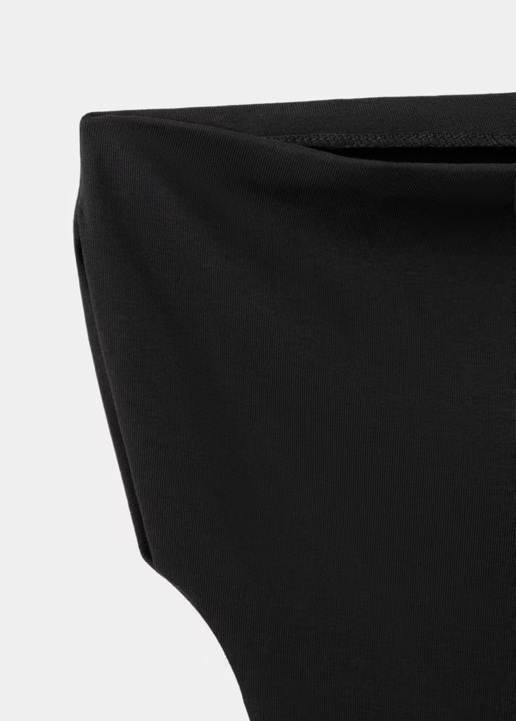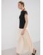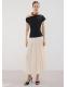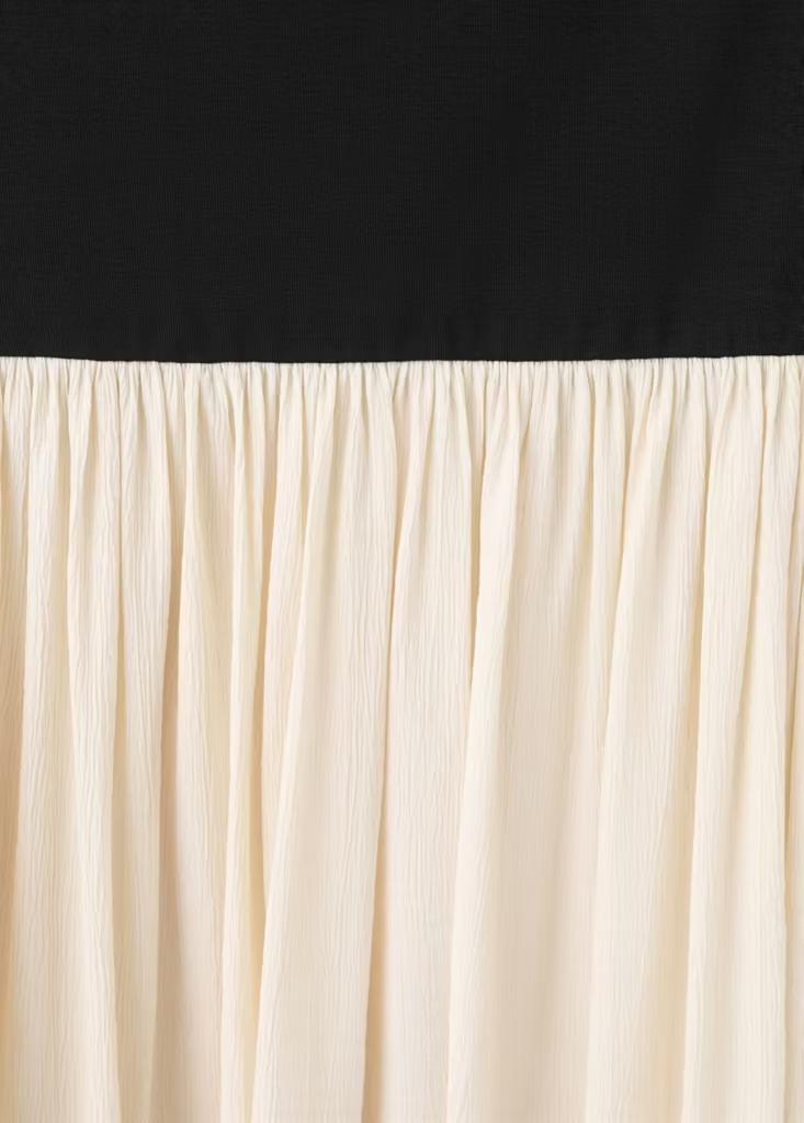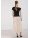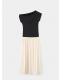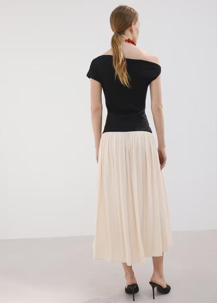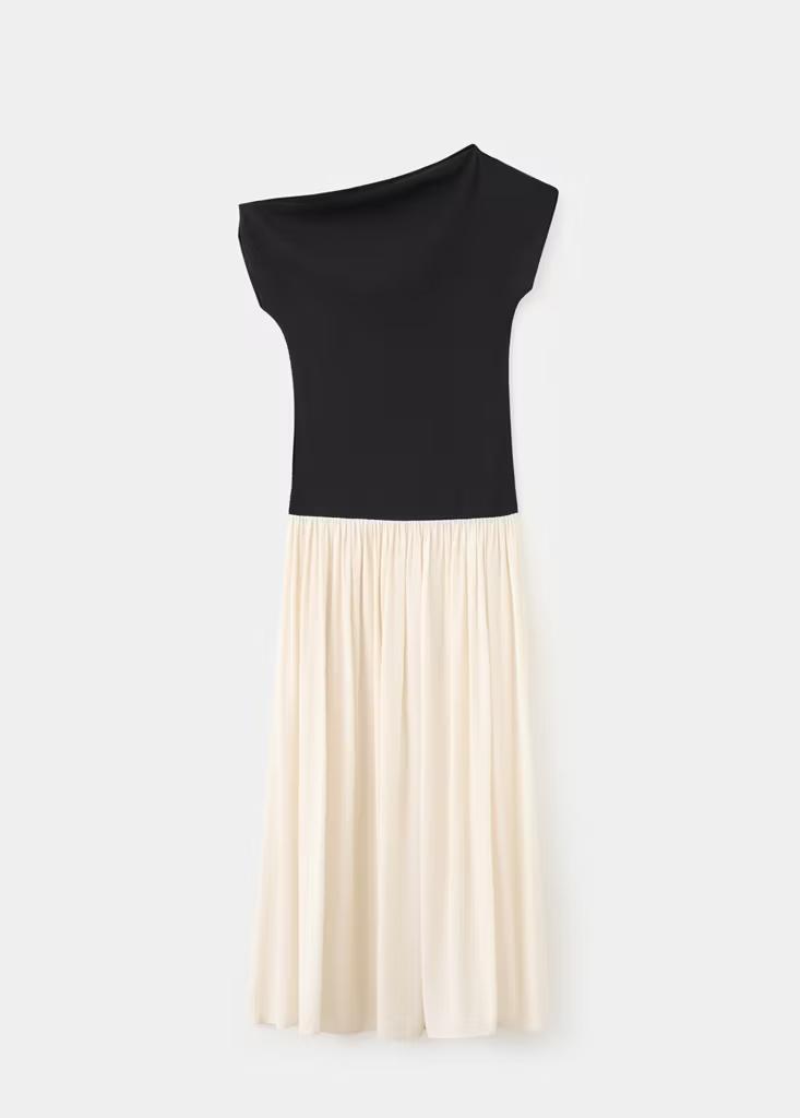 Tejido de algodón. Diseño asimétrico. Diseño evasé. Diseño largo. Cuello barco. Manga corta. Forro interior