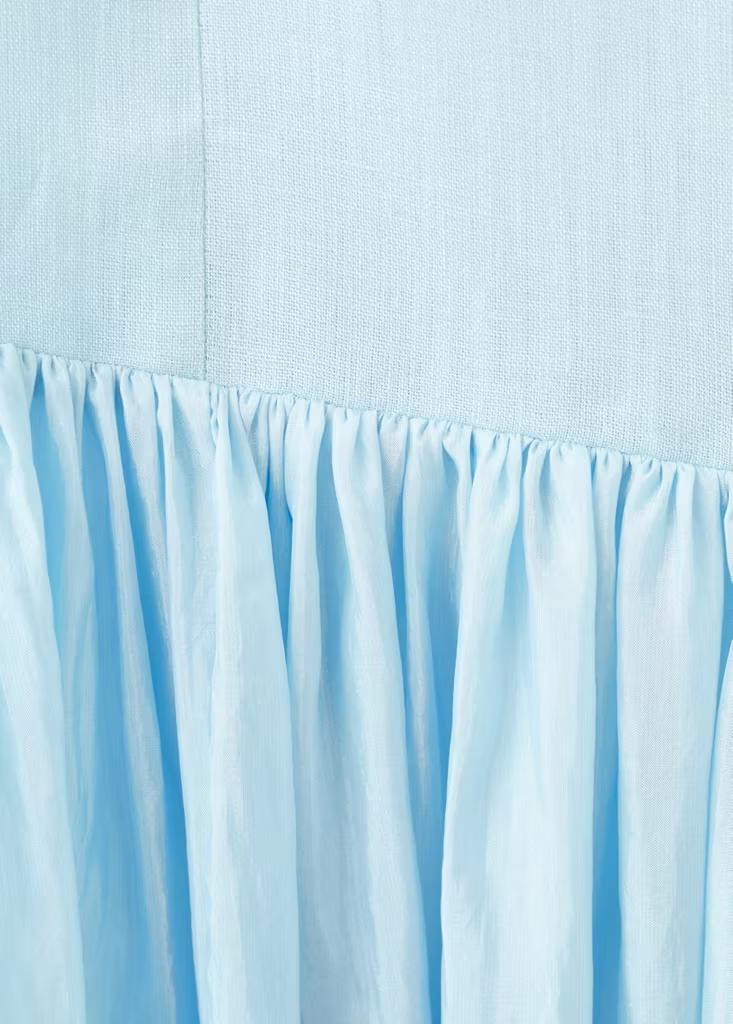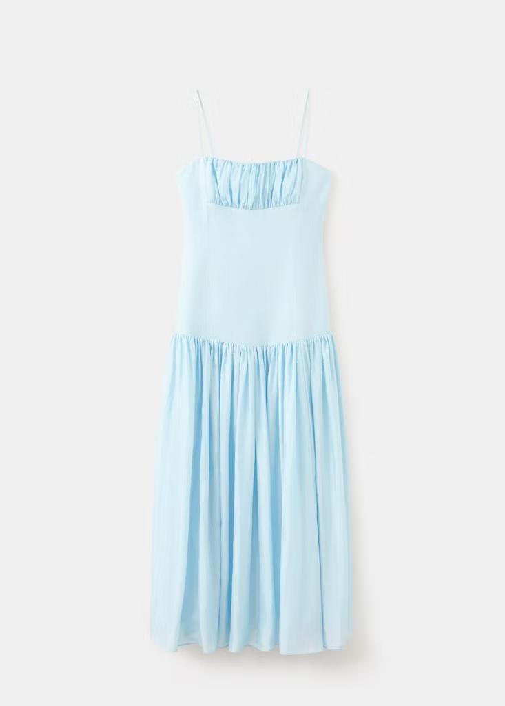 Tejido 100% lino. Diseño largo. Diseño evasé. Diseño fruncido. Escote recto. Sin mangas. Tirantes finos. Cierre de cremallera en la parte posterior. Forro interior. Colección Selection. Una selección de prendas refinadas, confeccionadas con tejidos de calidad para construir un armario femenino y contemporáneo