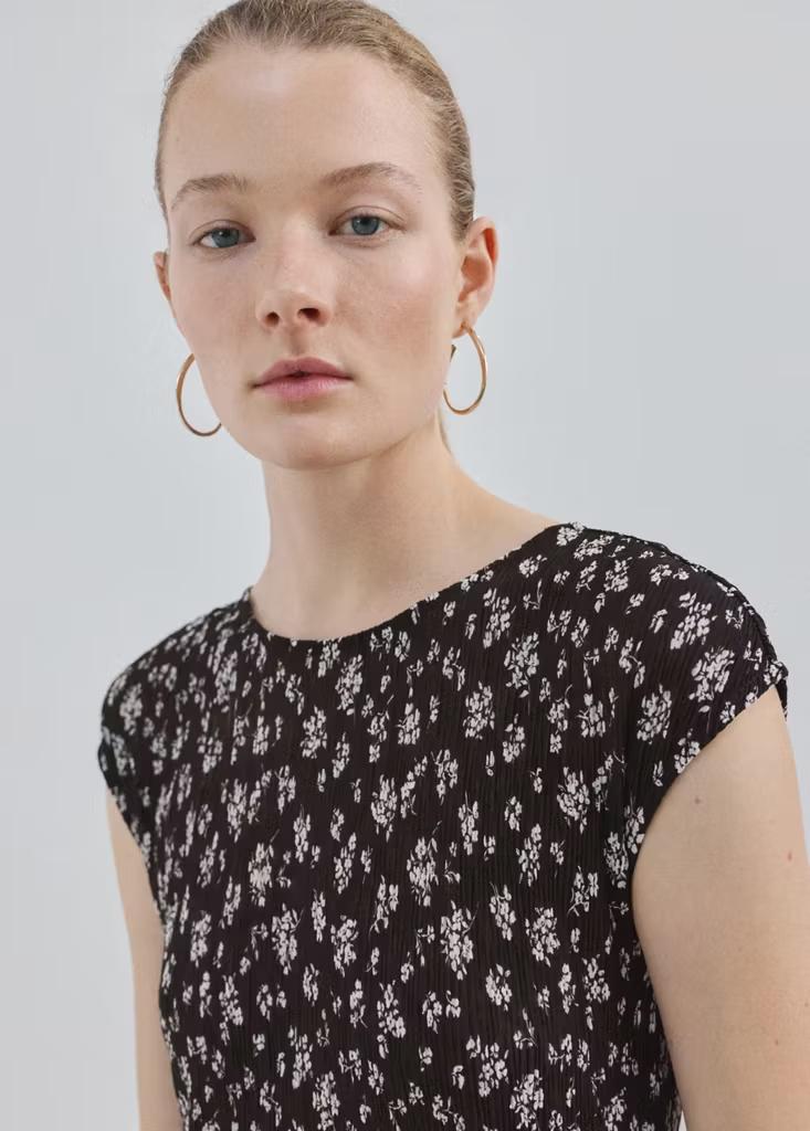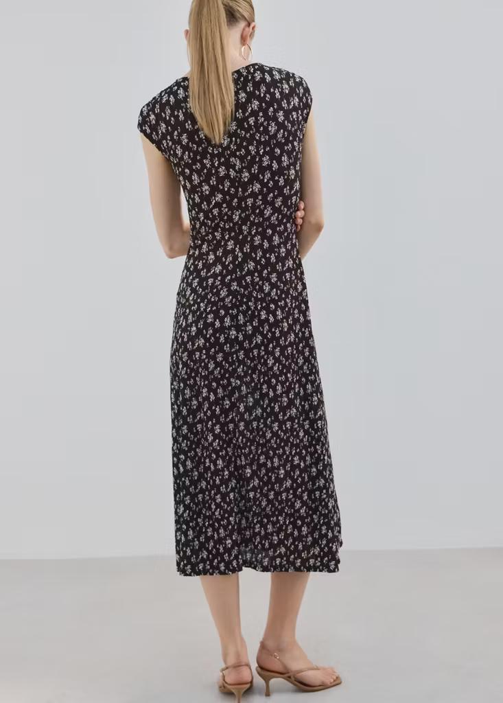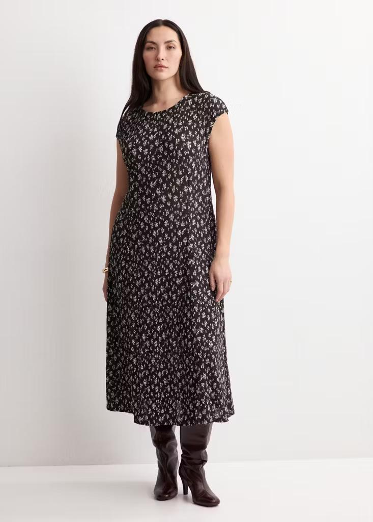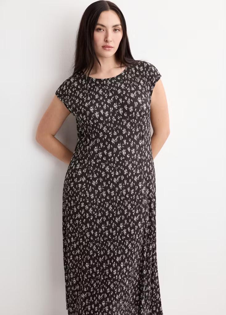 Diseño recto. Diseño midi. Cuello redondo. Estampado floral. Manga corta. Disponible Plus