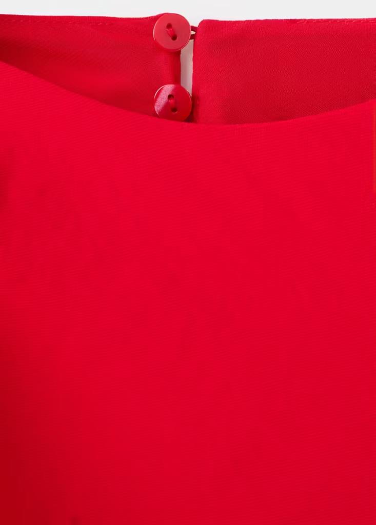 Diseño midi. Diseño evasé. Cuello redondo. Mangas asimétricas. Cierre de botón en el cuello. Esta prenda pertenece a nuestra colección de fiesta y evento, diseñada para elevar tus looks en ocasiones especiales