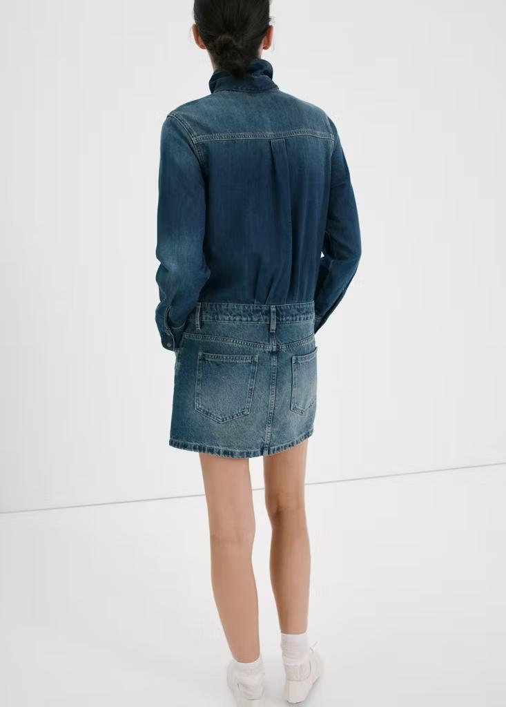Diseño corto. Diseño entallado. Diseño combinado. Cuello camisero. Manga larga. Trabillas. Cinco bolsillos. Cierre de cremallera y botones. Exclusivo Online