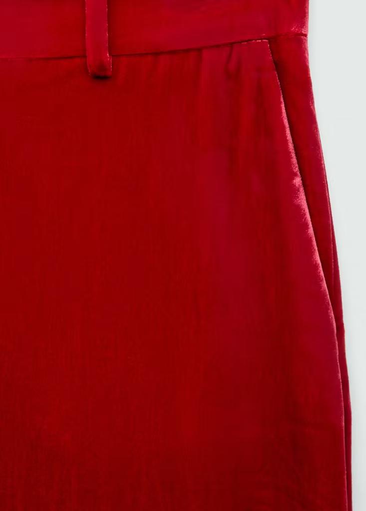 Diseño recto. Tiro alto. Cierre de cremallera en la parte posterior. Total look. Colección fiesta, ceremonia y comunión. Tejido de terciopelo. Tejido mezcla seda de mora. Una selección de prendas refinadas, confeccionadas con tejidos de calidad para construir un armario femenino y contemporáneo